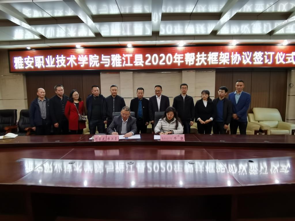 4月28日,学院帮扶雅江县座谈会暨帮扶框架协议签订仪式在雅江县委四楼常委会议室召开。首先,雅江县委副书记刘静总体介绍雅江县脱贫攻坚工作,雅江县脱贫攻坚办具体汇报2019年脱贫攻坚工作情况与学院提供的专项资金使用情况。随后,樊先茂通报了帮扶框架协议具体内容,石静对雅江2019年实现脱贫摘帽表示祝贺,强调学院将举全员之力,继续着力医疗帮扶、聚焦教育帮扶、抓实结对乡(村)帮扶,与雅江县一同坚决夺取脱贫攻坚全面胜利。最后,石静与雅江县县委书记刘宗建签订了《2020年脱贫帮扶框架协议》,确保双方在脱贫攻坚收官之年,共同持续用力,严格贯彻落实“四个不摘”巩固脱贫成效,防止返贫复贫。