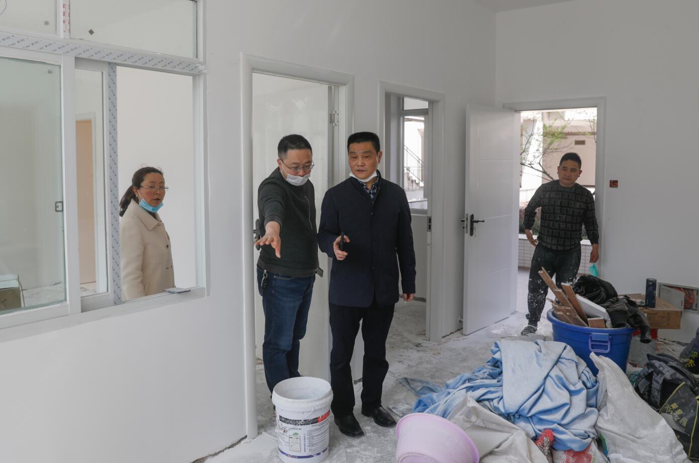 在校医室发热门诊建设项目现场,李春模走进施工场地,详细了解了发热门诊功能分区、建设进度,他强调,后勤处、校医室要督导施工单位抓紧抓实发热门诊的建设工作,做好门诊所需设备、药品的采购等工作,务必在开学前完成建设并投入使用。