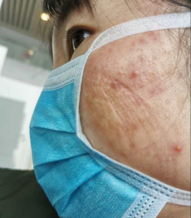 按照安排,实行四班倒,6小时轮班制,每次轮班15个护理人员,负责400多个床位。12日,罗茂娇、孙杰轮班。早上6点30,罗茂娇、孙杰吃完早饭,从酒店出发,坐车半小时后到达方舱医院。洗完手,穿戴好口罩、帽子、隔离衣、手套、防护服、护目镜,各项准备工作就绪后,正式进舱交接班,交完班以后检测病人的各项生命体征,观察患者病情变化,发放药物、午餐盒饭、水果、牛奶,与病人聊天进行心理疏导等等。下午14:00点下班,在缓冲间、脱间污染区、脱间半污染区、清洁区依次脱下各种防护装备,洗手,消毒,完成面、耳部清洁等系列程序后,坐车返回到酒店。在酒店门口,排起长队,每人间隔一米,由酒店管理院感的老师,一个一个地指导再次消毒,她们给大家把好最后一道关。回到房间,开始半小时以上的洗澡,整理好出来时已是18点多。从酒店出发离开到回到酒店,一共10余个小时。在这10余个小时里,罗茂娇、孙杰切切实实地感受到了一线医务工作者的不易。防护服、护目镜、纸尿裤,上班时间不吃饭、不喝水、不上厕所,护目镜起雾滴水、防护服湿透、脸上满是痘痘、压痕,手被汗水浸泡变了样……这些原来只在媒体报道上出现的场景,全部发生在了自己身上。孙杰说,“一天工作下来确实很累,感觉浑身都在痛,在舱里测量最基本的生命体征,都比在外面花的时间多,所有大幅度的活动都不能有,转个头都需要与身子一起转动,否则防护服一旦崩开了,就要立即出舱,重新更换防护服,这样一整套流程下来,既浪费了防护服,也浪费了时间。”
