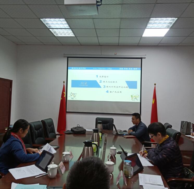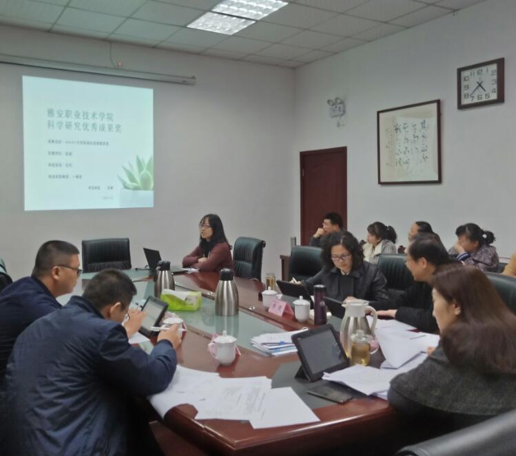 11月12日下午,在育才路校区行政办公楼211、210会议室,学院召开了2019年度院级科学研究优秀成果奖评审会,邀请到四川农业大学潘坤教授、李清源教授,雅安市教科所主任王浩、雅安市人民医院院长邱雄、雅安市科技局副局长陈亚、雅安市三九药厂郝莉共6位来自相关行业院外专家与学院院长石静正研究员、学院副院长刘红教授、临床医学院祝继英教授、思政部李霓副教授4名院内专家一起担任评审。成果申报负责人、团队成员及科研处工作人员参加此次科学研究优秀成果奖评审会。