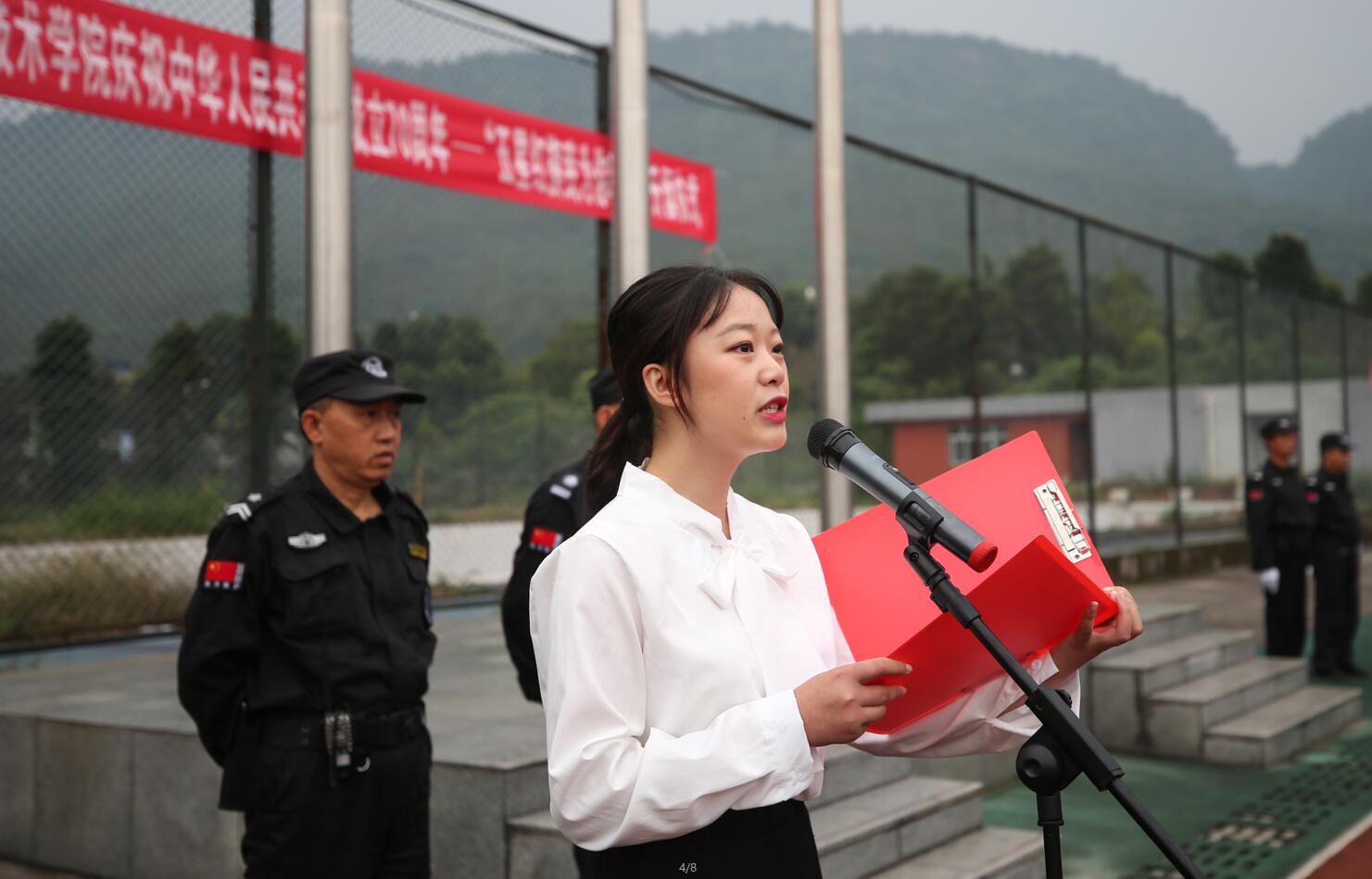 为庆祝中华人民共和国成立 70 周年,唱响“礼赞新中国,奋进新时代”的昂扬旋律,激发爱国之情,强化爱国之志,营造团结奋进的浓厚氛围,9月30日早上7:40,迎着秋日的朝阳,学院分别在青年路校区足球场和经开区实训与服务中心运动场举行了“五星红旗,我为你骄傲”升旗仪式。学院党委班子成员、中层干部、辅导员、两个校区的全体在校学生参加活动。