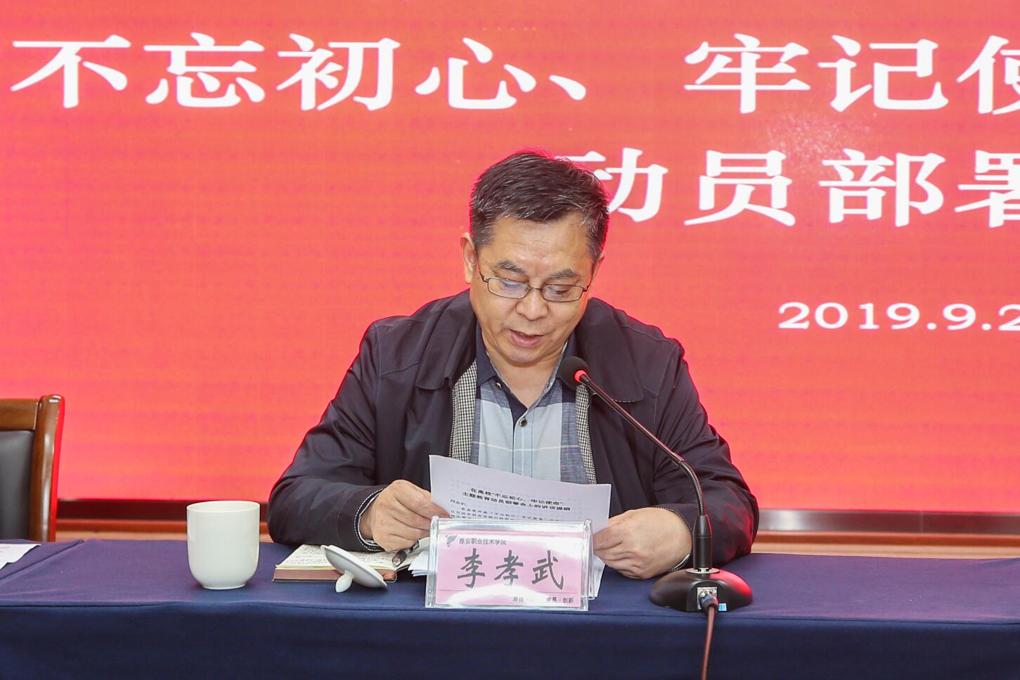 学院党委书记李春模在动员部署讲话中指出,为了开展好此次主题教育,前期经过认真筹备,成立了学院党委主题教育领导小组及相关机构,研究制定了《“不忘初心、牢记使命”主题教育实施方案》,为高起点开局、高质量推进学院主题教育奠定了坚实基础。就开展好主题教育,他提出了四点意见:一是要提高政治站位,深刻领会开展主题教育的重大意义。对学院而言,开展主题教育是学院实现高质量发展的实际需要、根本要求、现实举措和重要保证,是进一步坚定政治信仰,守初心、炼党性的实际需要;是进一步加强政治领导,担使命、强本领的根本要求;是进一步提高政治能力,强党建、严治校的现实举措;是进一步强化政治担当,抓落实、创一流的重要保证。二是要深化思想认识,切实增强开展主题教育的政治自觉。要从为党育人、为国育才的战略高度来领会,从推动学院高质量发展的实践维度来认识,从建设一流高职院校的现实角度来把握,切实增强政治自觉、思想自觉和行动自觉。三是要聚焦根本任务,坚决贯彻开展主题教育的总要求。学院要坚持立德树人守初心、坚持勇争一流担使命、坚持对标对表找差距、坚持立行立改抓落实。四是加强统筹协调,确保主题教育扎实有序推进。学院党委成立了主题教育领导小组强化责任落实,各党总支(直属党支部)要按照学院主题教育实施方案,精心组织,周密安排;注重统筹结合,将开展主题教育同庆祝中华人民共和国成立70周年结合起来,同贯彻落实全国全省全市教育大会精神结合起来,同优质校和“双一流”建设结合起来,同做好巡察整改“后半篇文章”结合起来,同落实今年党委重点工作结合起来,同全院党员干部履职尽责结合起来。把学习教育体现在促进学院高质量发展上,体现在回应师生呼声满足师生美好生活需要上,持续营造学的氛围、严的氛围、干的氛围,以扎实的工作成效检验主题教育成果。