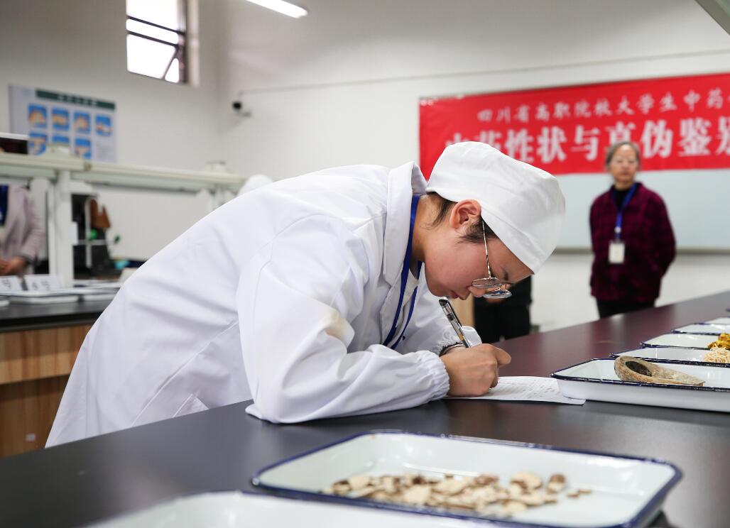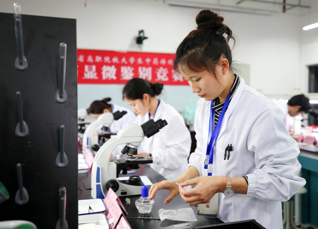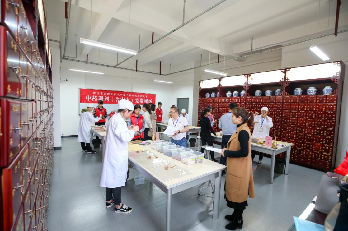 据悉,比赛分为高职组和中职组,包括中药调剂审方理论、中药性状与真伪鉴别、中药调剂、中药炮制、中药显微鉴定等五项内容。为了保证大赛顺利进行,给参赛院校的师生提供舒适的参赛体验,药检学院的老师、志愿者共计70余人做好了服务工作。赛场内井然有序、认真仔细的实训准备,志愿者礼貌热情、微笑洋溢的迎接领路,休息室、比赛观摩室内耐心细致的服务工作都彰显了学院师生优秀的综合素质。比赛期间,药检学院组织来访的职业院校和协办的医药企业单位举行了产教融合教育研讨会。