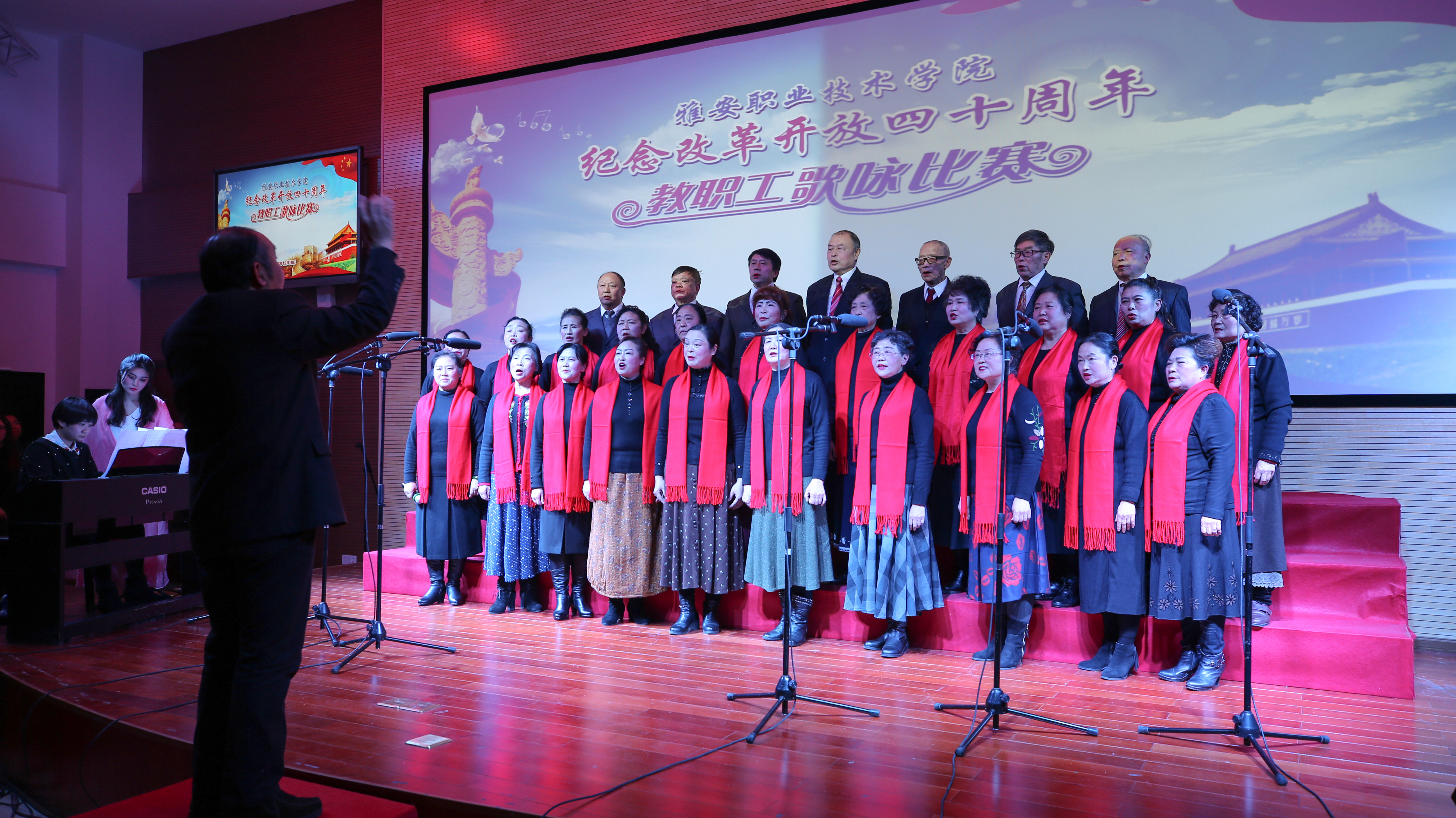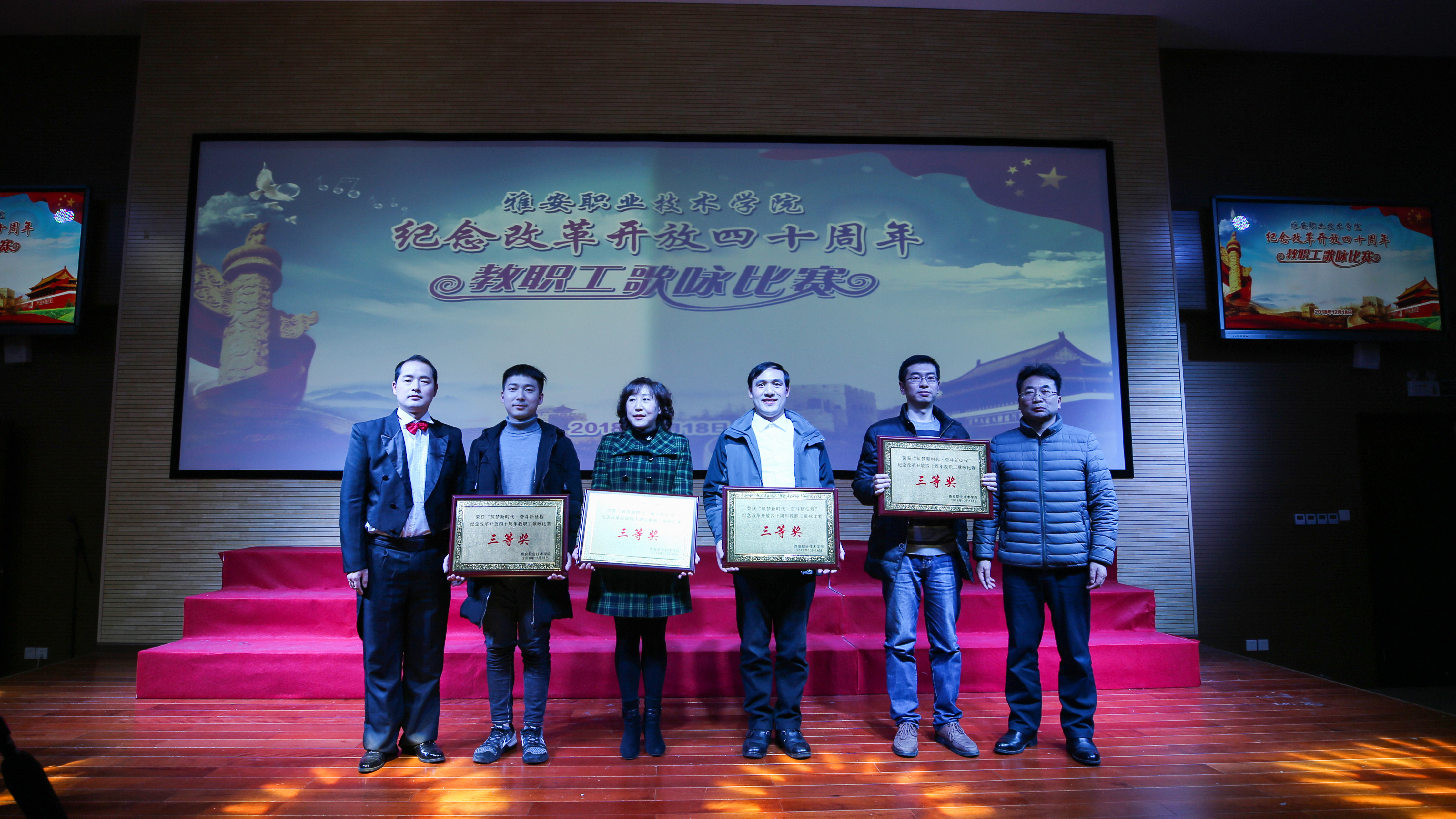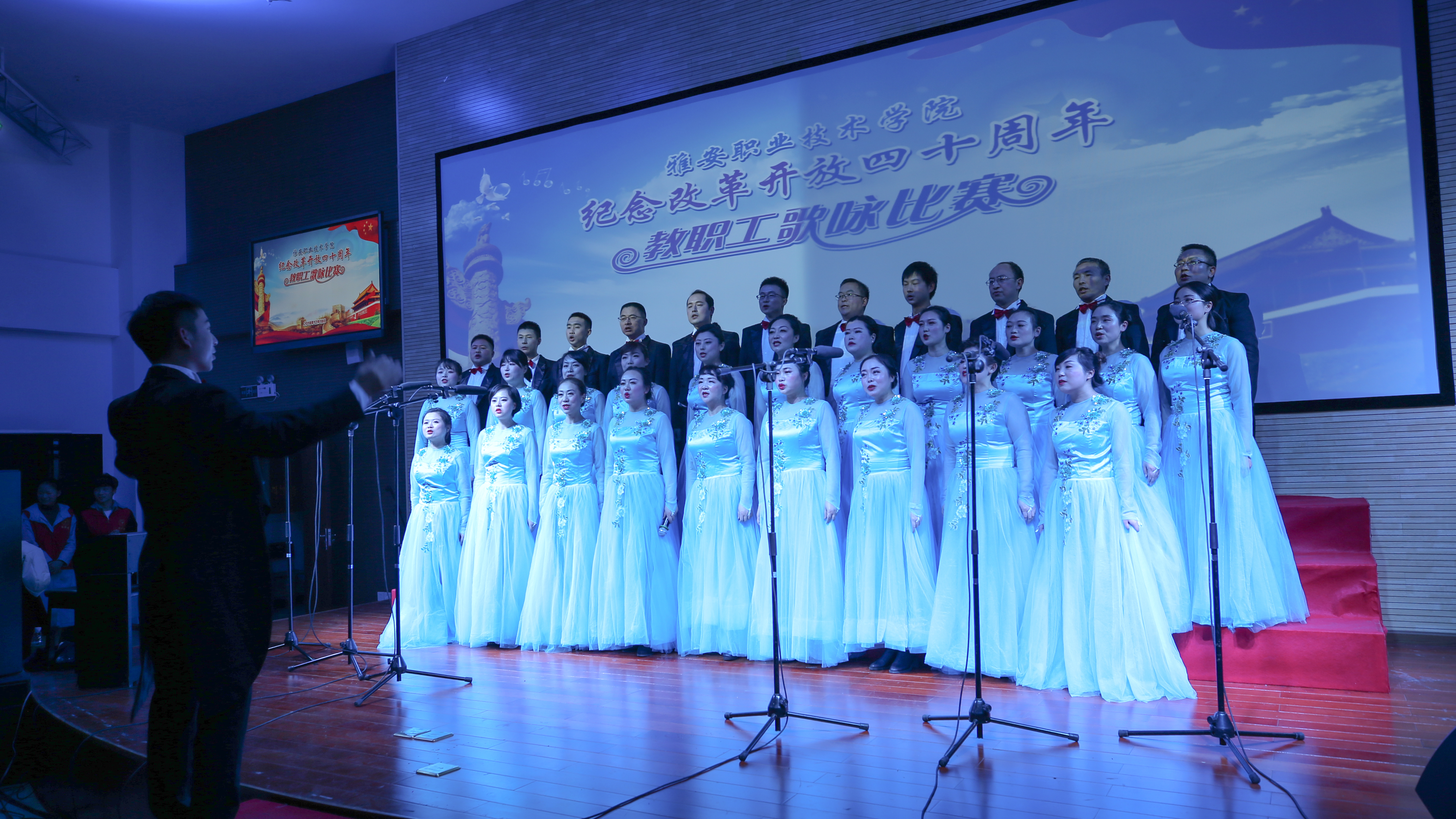 【本网讯】12月18日,beat365在线唯一官网“筑梦新时代•奋斗新征程”庆祝改革开放四十周年教职工歌咏比赛在青年路校区实验实训楼二楼多功能厅隆重举行。学院党委书记李春模、院长石静等院领导莅临现场观看并参与演唱,各党总支、工会组成10支代表队、360余名教职工参加了演唱活动。比赛邀请了中国音协会员、四川省音协理事、雅安市音协主席李宣康,中国音协会员、四川省音协理事、雅安市音协副主席吕志健等5位专家担任评委。