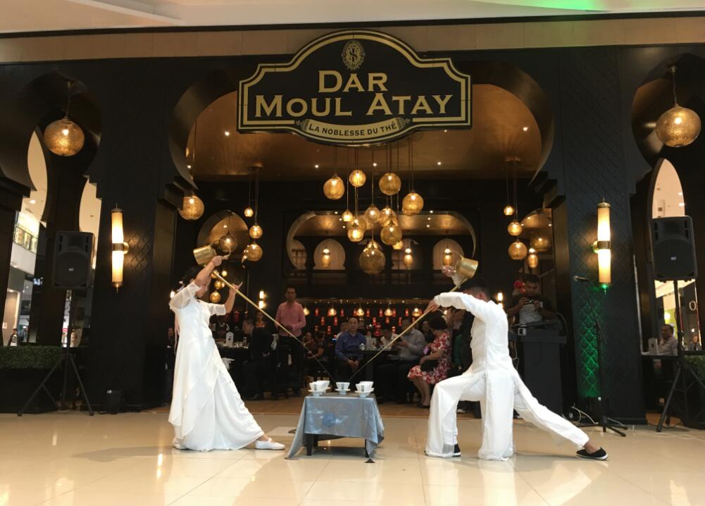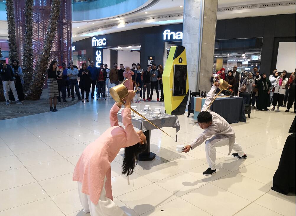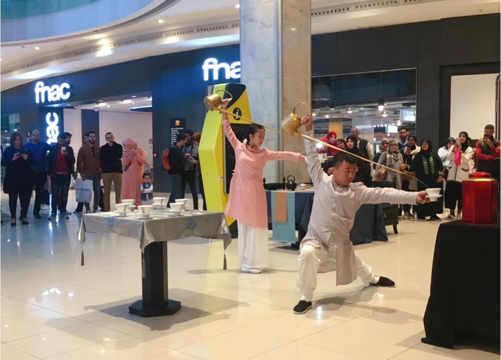 【本网讯】10月21日—28日,为加强茶文化的国际交流与合作,学院普专茶艺与茶叶营销专业学生苟彬银和杨敏两位同学赴摩洛哥参加了“川茶飘香”茶文化交流活动,在摩洛哥拉巴特、卡萨布兰卡进行了多场长嘴壶茶艺表演。