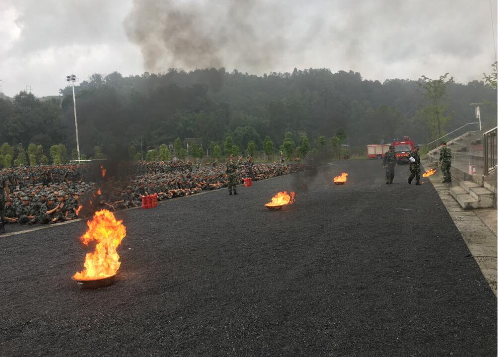 随着现场总指挥宣布演练开始,消防控制室发出消防疏散警报,发烟组人员点燃发烟罐,烟雾冒出。现场疏散人员指挥学生有序疏散,并提醒学生撤离时要用湿毛巾、湿手帕捂住口鼻,弯腰撤离,特别注意楼梯口的疏散安全。学生迅速疏散到指定地点进行集合,各连队教官清点人数后向总指挥报告。疏散程序在紧张有序中完满结束。