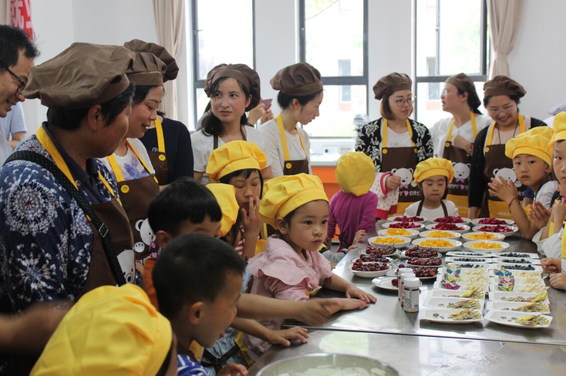 自制饼干环节,工作人员把饼干胚分发后,伴着孩子们的笑声,家长和孩子间的紧密配合,斑马、爱心、小熊、玉米、胡萝卜等一个个栩栩如生、可爱生动的形象随之而出,这不仅是和谐、融洽的配合,也是孩子和家长之间的心理交汇,从孩子欢乐的笑声中,在家长专注和幸福的表情中,美妙的亲子关系不禁在心间流淌。将饼干胚刻成心目中各种生动形象后,需要经过20分钟烘烤,便可让膨胀已久的味蕾品尝亲手自制饼干的甜蜜。