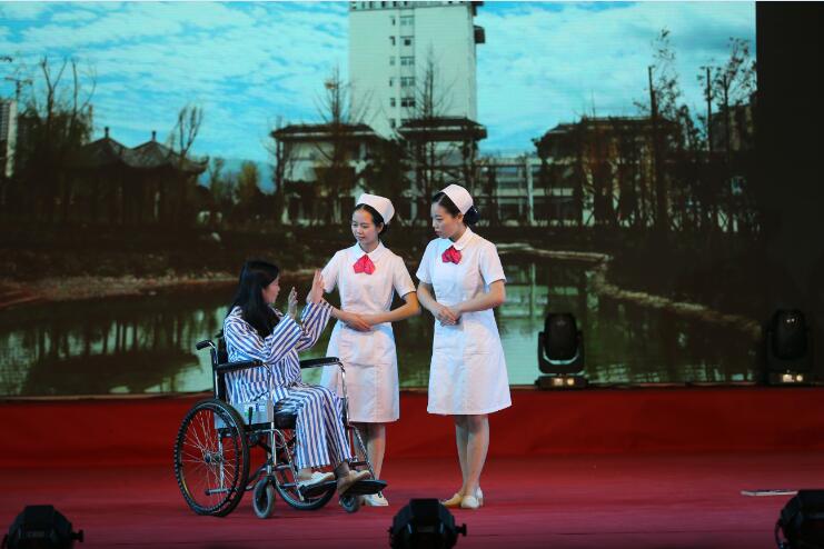 在院长石静宣布晚会正式开始后,由大学生艺术团、各系同学带来的一个个精彩节目轮番登场。新疆舞《掀起你的盖头来》让大家感受到了浓郁的民族特色;舞蹈《热血街舞》充满青春活力;《汉唐礼仪》将汉代礼仪展示和舞蹈相结合,于绘声绘色的表演中弘扬了中华传统文化;歌曲《山楂花+南山南》唤起了两代人青春的记忆;情景剧《大山支教》讴歌了教师们无私奉献的精神;《礼仪展示》通过规范的形体语言呈现了护士的礼仪修养以及良好的职业操守。压轴节目传光授帽仪式庄严而又神圣,当护理系前辈们为护生们戴上圣洁的燕尾帽,大家庄严宣誓将继续发扬开拓创新、锐意进取的精神,展现新时代护理人员的风采。