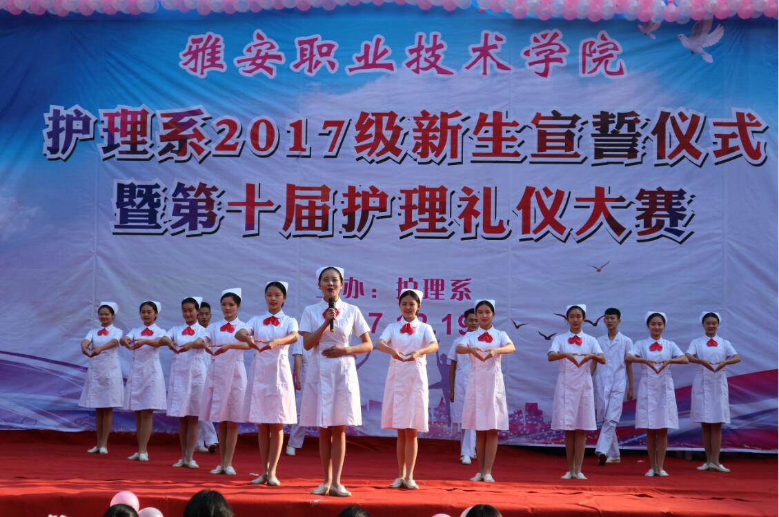 【本网讯】为激励护理系学子继承和发扬南丁格尔精神,12月19日下午,2017级新生宣誓仪式暨第十届护理礼仪大赛在青年路校区举行。护理系主任王静,党支部书记姚婕、副书记李敏,团总支书记万黎、副书记吴玉阳,教研室主任陈俊以及教师代表王菠、谢琳娜等参加了本次大赛并担任评委。