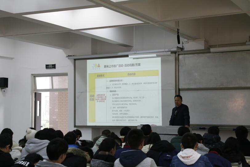 王斌首先向师生介绍了企业的基本情况,并就创新创业谈了自己的看法。最后给同学们确定了格纳斯光学镜片、米TO、爱尚羽毛球三个方面的创新设计主题。