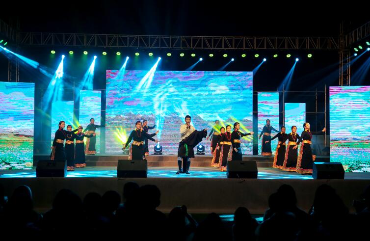 引人入胜;由学院教师王昌宇作曲、王珏玉演唱的歌伴舞《茶语芳菲》,仿佛再现了青衣江畔灵动的歌谣、蒙顶山巅阵阵的茶香;歌伴舞《康巴姑娘》用欢乐的歌舞将观众带入辽阔的草原;《大山之教》展现了支教教师对教书育人的热爱和对孩子们的关心,这感人的场景,重重地敲击了我们的每个人的心灵,使大家陷入了沉思;一个古老民族用生命激情演绎的歌舞《彝人部落》带来了彝家独有的风土人情,使观众欢呼雀跃,掌声络绎不绝,将整个晚会推向高潮。晚会最后,歌伴舞《共筑中国梦》融情于景,过去的五年我们砥砺前行,未来五年不忘初心,携梦飞翔。