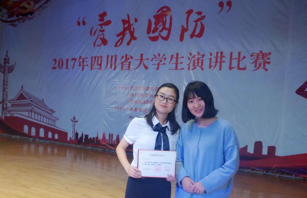 总决赛中,周红阳同学围绕“爱我国防”的主题,以《军民同心,壮我中华》为题目,结合自己所见所闻,联系自身专业特点,以真实质朴的内容,深情感人的语言讲述了自己对国防的认识,表达了立志以一己之力汇入到爱我国防、建设祖国的决心。最终她以出色的表现获得了“爱我国防”四川省大学生演讲比赛总决赛三等奖。