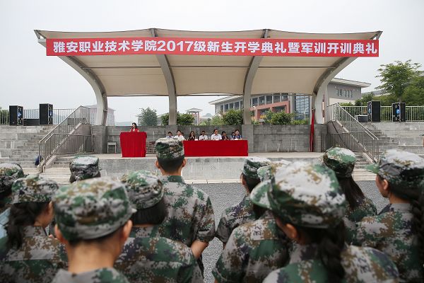【本网讯】9月13日上午,学院分别于青年路校区、经开区实训与服务中心举行了2017级新生开学典礼暨军训开训典礼。学院党政领导,各职能部门、各系负责人,雅安军分区装备建设处处长高国盛等出席了典礼。