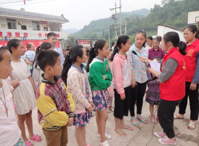 上午9:30,志愿者们一行到达铜山村文化院坝,随即与村两委干部快速布置好会场,现场陆续已有60余名4-14岁的儿童在家长陪同下一起在院坝中等候,其中有不少是留守儿童。教育系女生以一段优美的民族舞独舞《舞美家乡》拉开了序幕,孩子们都沉醉于这优美的舞姿中。之后志愿者们依次组织孩子们做了红黄牌、桃花朵朵开、成语接龙、左右脚等小游戏,小朋友们热情高涨,积极参与到游戏之中。随后院团委王昌宇老师给大家献唱了民歌《欢聚一堂》,赢得观众阵阵热烈的掌声。在欢乐融洽的气氛中,志愿者们又教小朋友们跳起了《小苹果》广场舞,随着欢快的音乐、动感的节奏,小朋友们一起加入到集体舞中,既锻炼了身体又愉悦了心情。最后,志愿者们协助村委干部依次给小朋友们分发了文具用品,旨在鼓励他们从小树立努力学习的观念。
