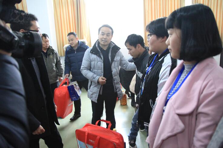 张大凯书记代表学院慰问了22名贫困学生及所在家庭,亲自将棉被、被套、食用油等生活用品送到他们手中,并向出席仪式的各位领导、教师介绍了学院的发展历程及办学情况,及开展精准帮扶工作以来两校在中高职协同发展、合作办学等方面取得的最新进展,同时鼓励同学们要努力学习改变命运,阻断贫困在代际间的传递,为国家经济社会贡献一份力量。