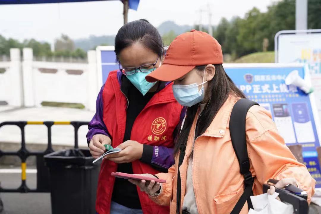 迎新工作有序开展之余,返校后学生的安顿工作也在井然有序的进行中。十六工会小组组长、中医与康复养生学院教师罗肖雷,已连续四天奔走在服务保障一线,每天早上7点过,罗老师便到达迎新现场,和众多志愿者老师一起,为一批批返校学生搬行李、送盒饭、买日用品,检查防疫,忙得不亦乐乎,每天忙到傍晚六七点才结束。从经开区校区到青年路校区,再到育才路校区,面对千头万绪的学生志愿服务工作,罗肖雷无巨细的悉心相助。10月13日,家住名山区的学院第九工会小组组长、科技图书情报处职工黄钢一大早就起床,匆匆忙忙洗漱后来到名山福隆大酒店,和学院的其他老师一起,参与到对滞留名山的学校学生的疫情防控工作中,协助他们核酸采集,引导他们到餐厅就餐,对还未集中核酸的学生,引导他们就近到公共采集点完成核酸检测,忙得浑身是汗......