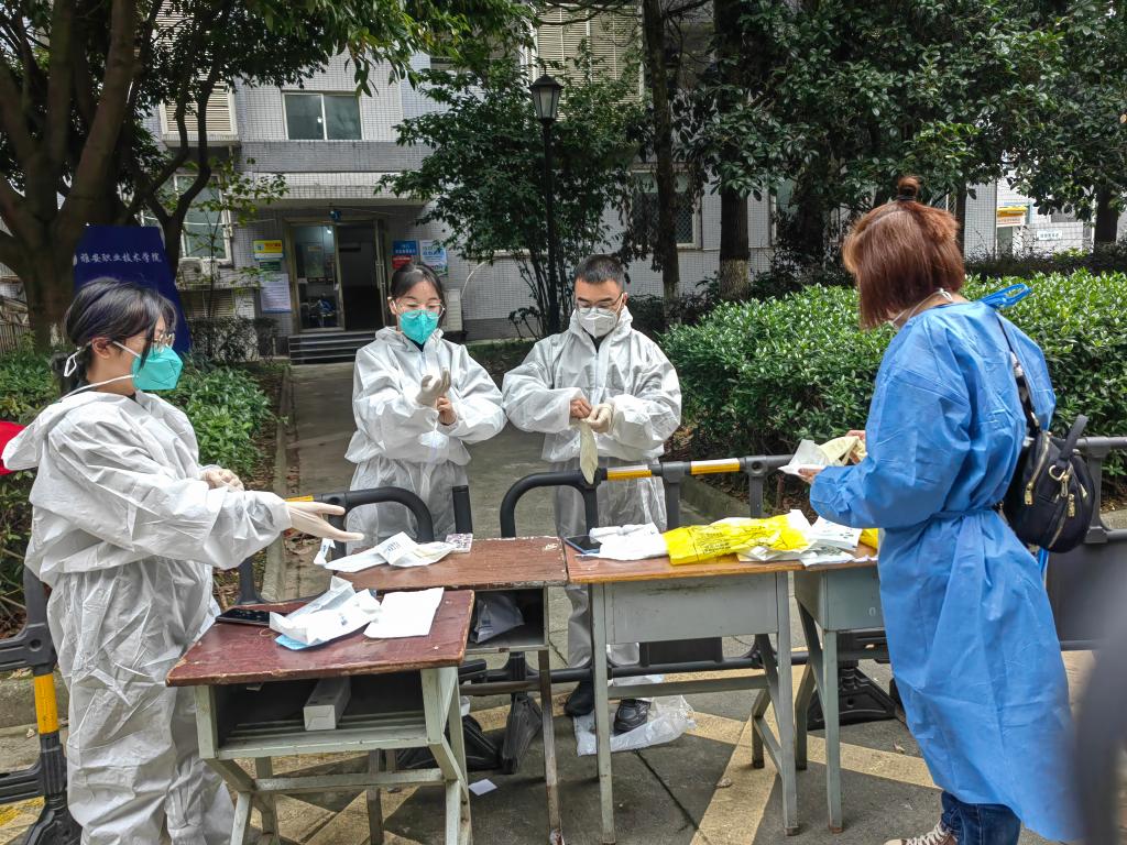 10月11、12日,护理学院周晓琴,杨宗莉,周良燕、廖君四位教师,早早就来到名山经开区校区,开始进行核酸检测信息录入工作。她们为所有返校学生采集核酸,累得浑身湿透,没有任何抱怨,认真完成录入工作。疫情的紧张、紧急让她们忘却了疲惫,她们斗志昂扬,投身战“疫”,无怨无悔。