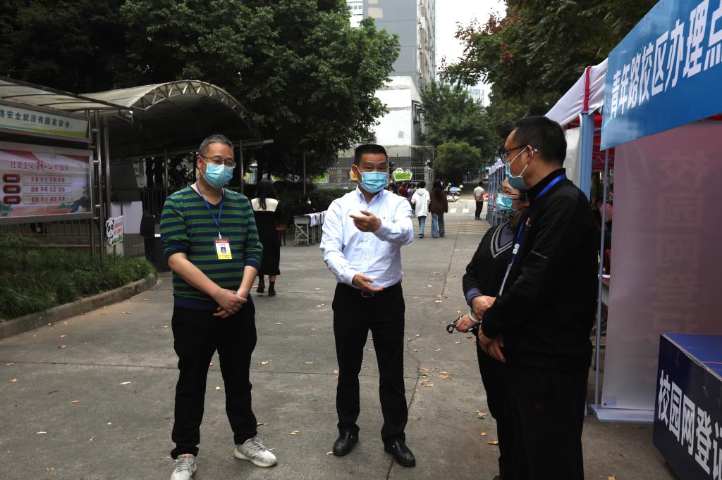 学院党委书记李春模带队分别到经开区校区、育才路校区两个校区检查迎新工作,关心了解新生的入校报到情况,慰问迎新工作人员和师生志愿者。
