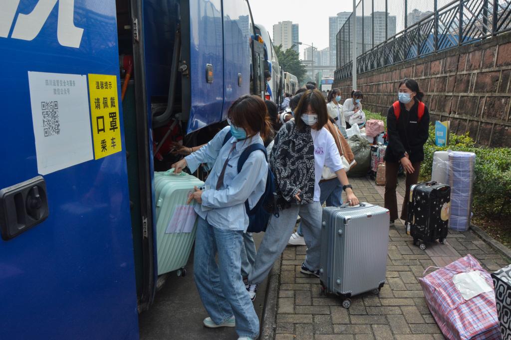 10月23日,我院第二批次返校的1537名学生结束居寝观察顺利转运至经开区校区和青年路校区。