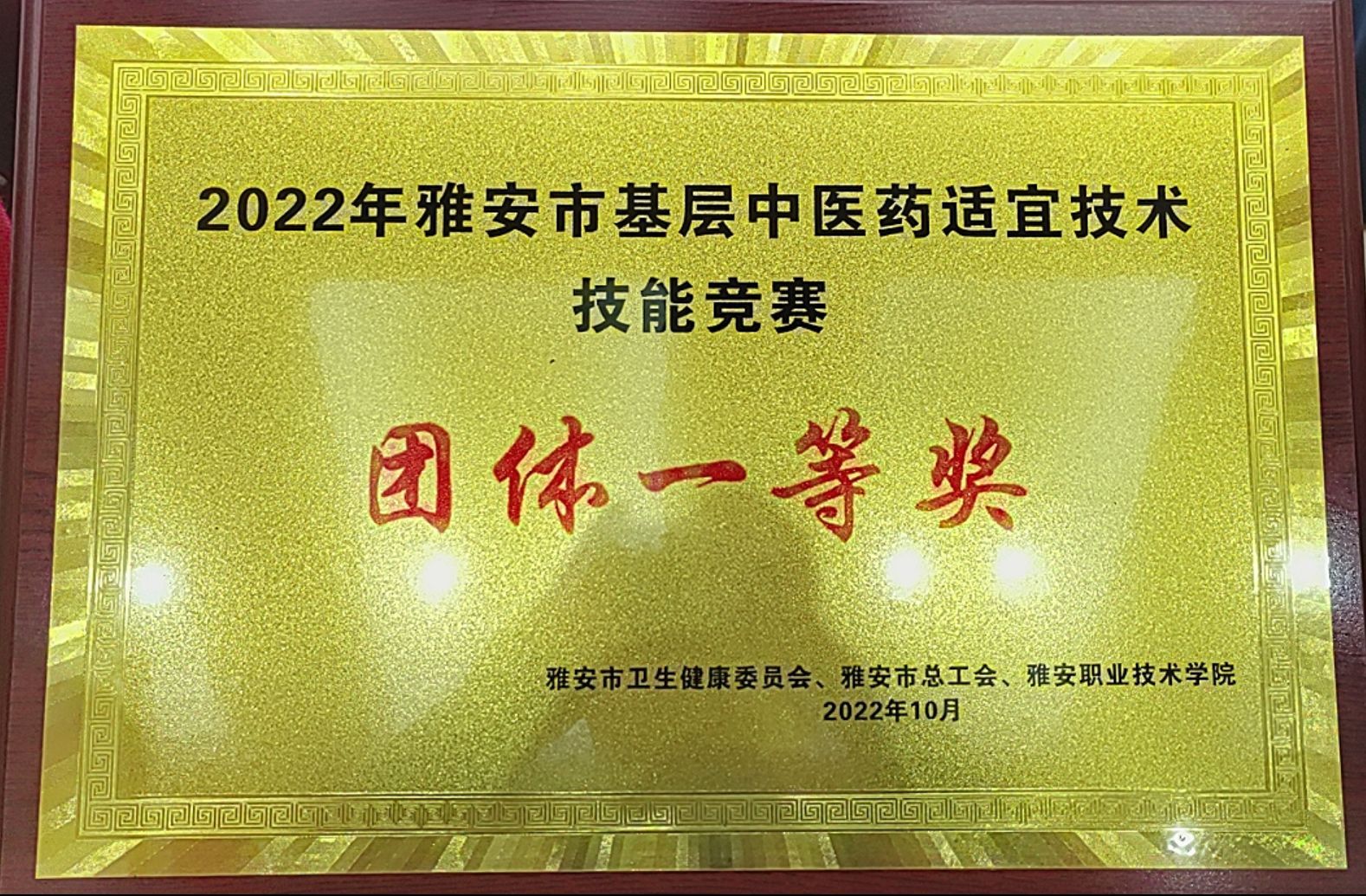 雅安市基层中医药适宜技术技能竞赛是对全市中医药人才队伍、中医药服务能力建设的一次全面检阅。赛前,医院领导高度重视,统筹谋划,做好各方面协调准备工作,会同中医骨伤•康复医学科主任周陆凝制订详细参赛方案并高标准选拔参赛队员。比赛过程中参赛选手们沉着冷静,规范操作,展现了娴熟的中医诊疗技术和良好的竞技风貌,经过激烈的角逐,我院荣获团体一等奖,参赛选手周陆凝荣获个人综合成绩特等奖,张敬苑荣获个人综合成绩一等奖,杨郦郦、胡平荣获个人综合成绩二等奖佳绩。