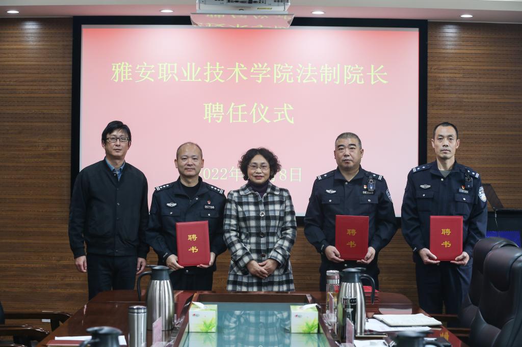 为推进“依法治校”和“平安校园”创建工作,切实加强学院普法教育,增强广大师生的法治观念。11月8日,“beat365在线唯一官网法制校长聘任仪式”在经开区校区综合楼303会议室举行。雅安市雨城区青江派出所教导员张昌煌、经开区永兴派出所所长谢建涛、受聘民警代表、学院工会主席夏安琼以及相关职能部门、二级学院负责人、法制辅导员参加聘任仪式。学院武装部部长、保卫处处长徐维主持仪式。