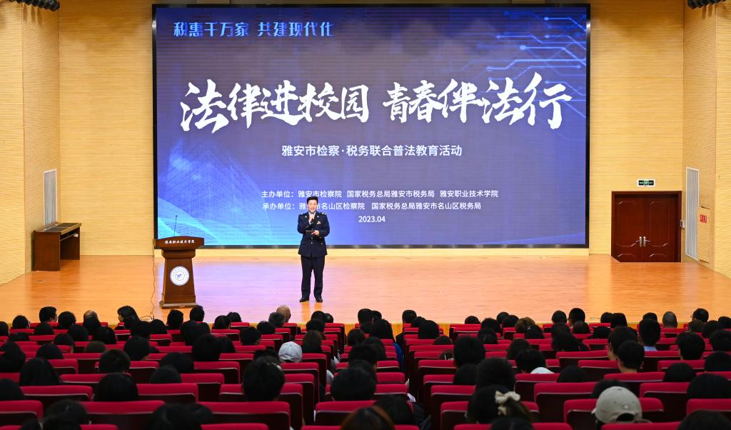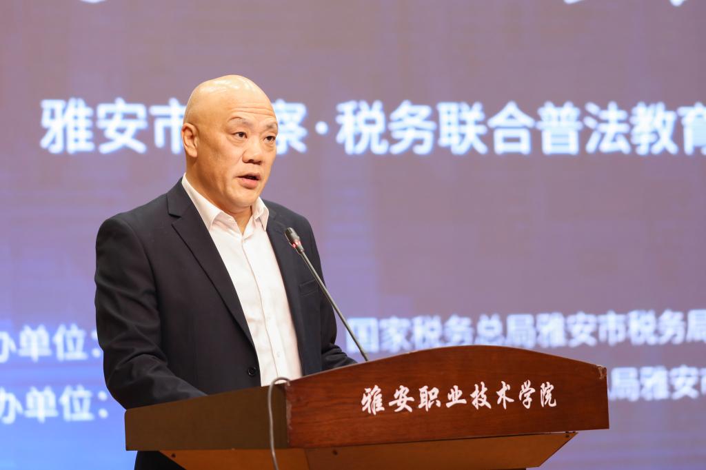 学院党委委员、副院长樊正康,名山区人民检察院党组成员、副检察长辛瑞,名山区税务局党委书记、局长王雅各,学院相关部门中层干部,大学生普法志愿者及300余名学生代表参加仪式。