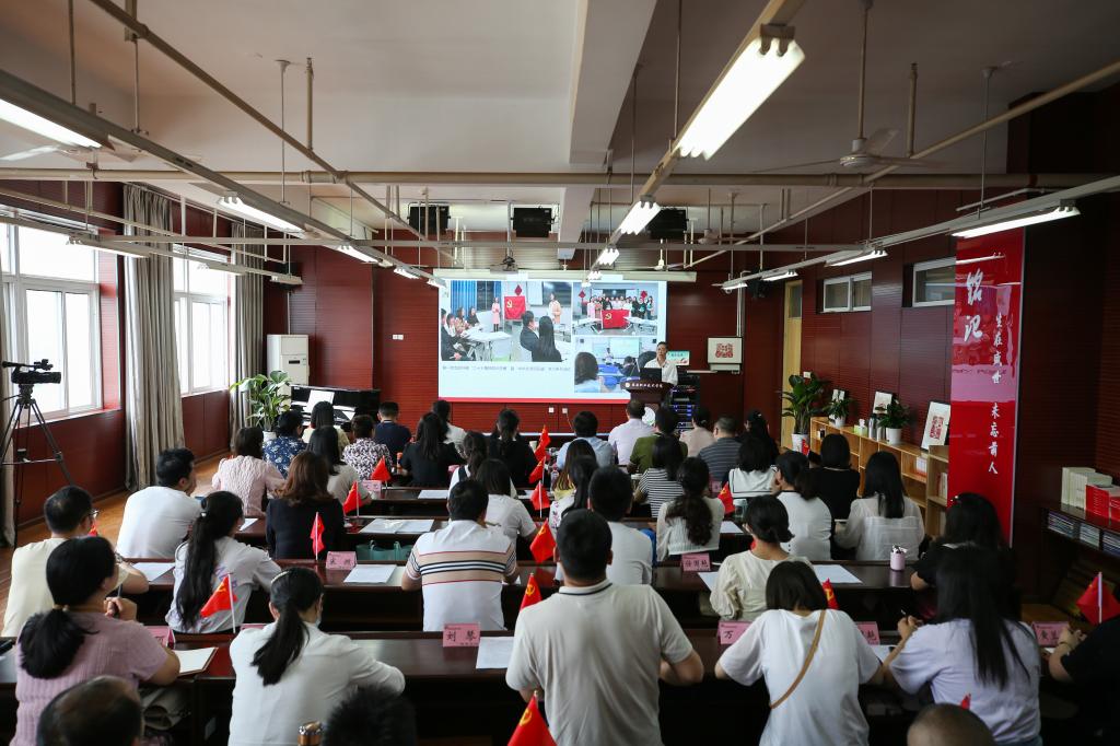 师范学院党总支第二党支部书记刘瑾瑾依托专业特色展示了一堂别开生面的音乐党课。通过学生红歌串烧表演、参会人员听音识曲等互动交流,让参会人员沉浸式学习了解《国际歌》《我的祖国》《卖报歌》《闪闪红星》等经典传唱的红歌背后的党史故事,引导广大党员坚定理想信念,加强党性修养,为新时代新征程鼓足奋进动力。