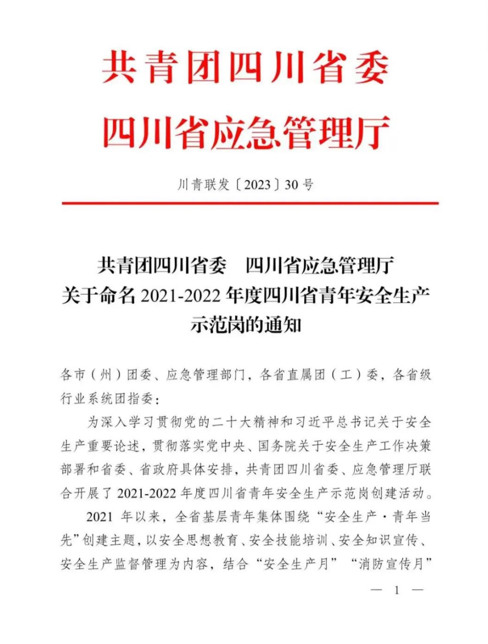 近日,共青团四川省委,四川省应急管理厅公布了2021-2022年度四川省青年安全生产示范岗名单,学院附属医院院感科获评四川省青年安全生产示范岗名单。