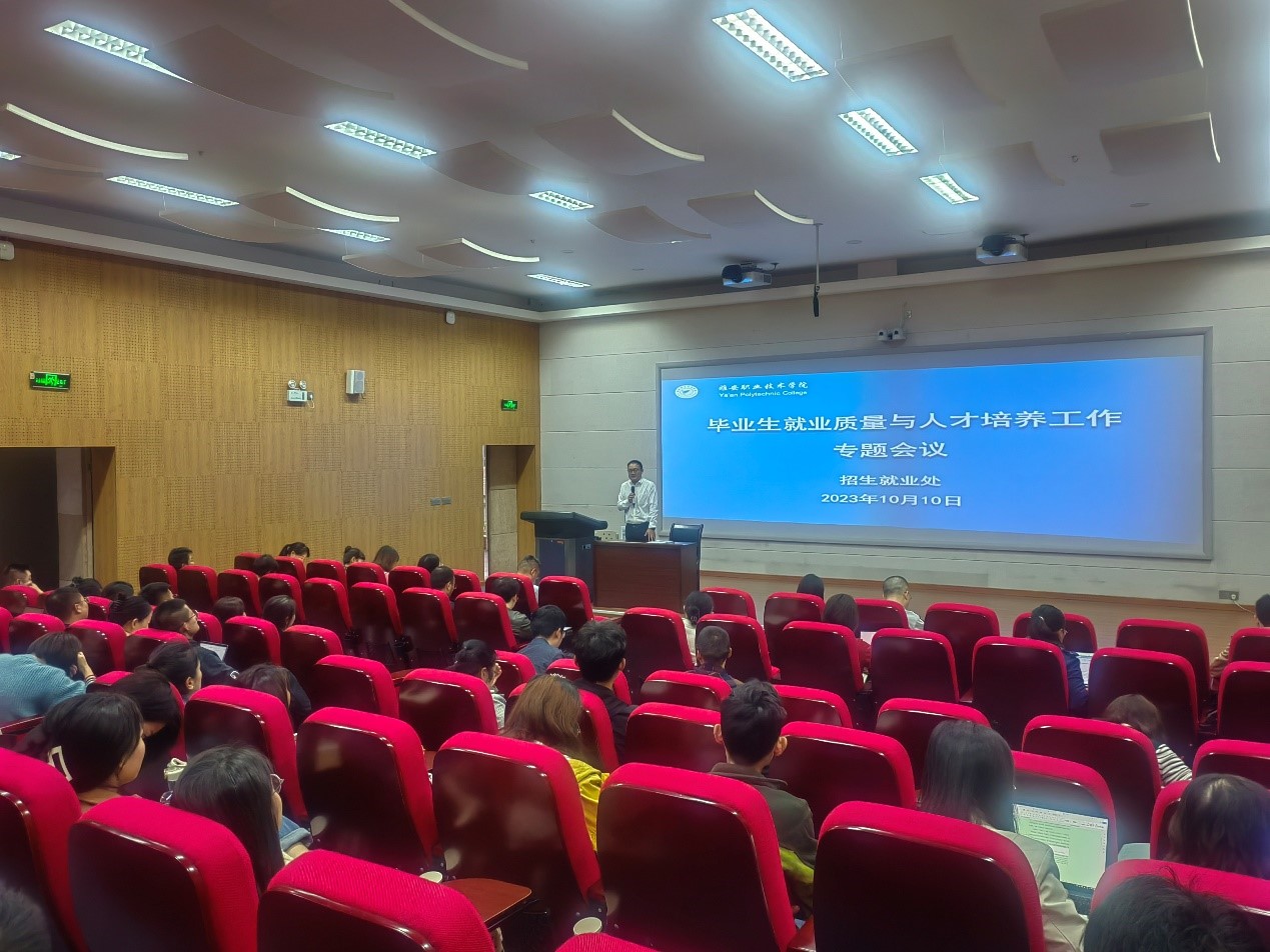 10月10日,学院在经开区校区第二教学楼2204会议室召开毕业生就业质量报告解读会,学院党委委员、副院长樊先茂,副院长彭裕红,招就处、教务处负责人,各二级学院负责人、分管教学负责人、辅导员代表共计70余人参会,会议由招生就业处负责人主持。