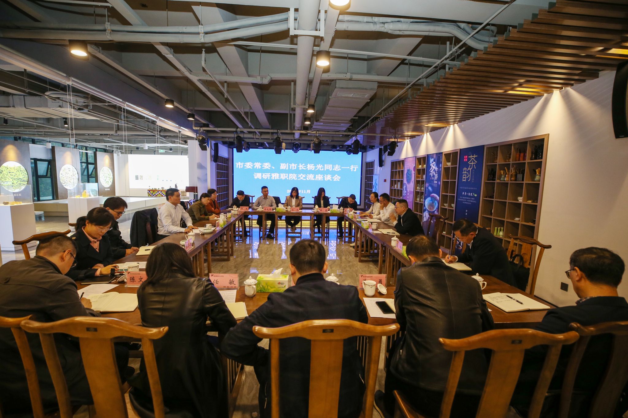 11月2日下午,雅安市委常委、副市长杨光来学院调研人才培养及服务地方经济社会发展工作情况。市政府副秘书长秦岭,市人社局、市文体局以及文旅集团相关负责同志随同调研。学院党委书记李春模,在校其他党政班子成员、相关部门负责同志陪同调研。