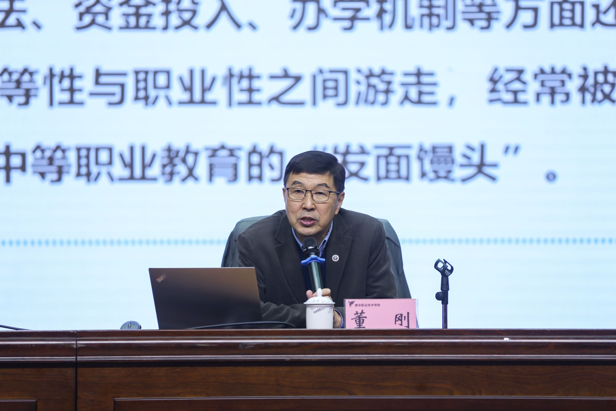 为深入贯彻落实党的二十大精神和习近平总书记关于职业教育的重要指示精神,进一步推进学院“双高”建设,促进学院高质量发展,11月12日下午,全国职业高等院校校长联席会议主席、天津职业大学原校长、天津市首席督学、二级教授董刚应邀在学院经开区校区聚雅厅,作了题为《高职教育高质量发展与“双高计划”实施及思考》的讲座。学院党政领导班子成员、全体中层干部、教师和行政管理人员代表、2023年新入职教师和全体辅导员共200余人聆听了讲座,专题讲座由学院院长黄诚主持。