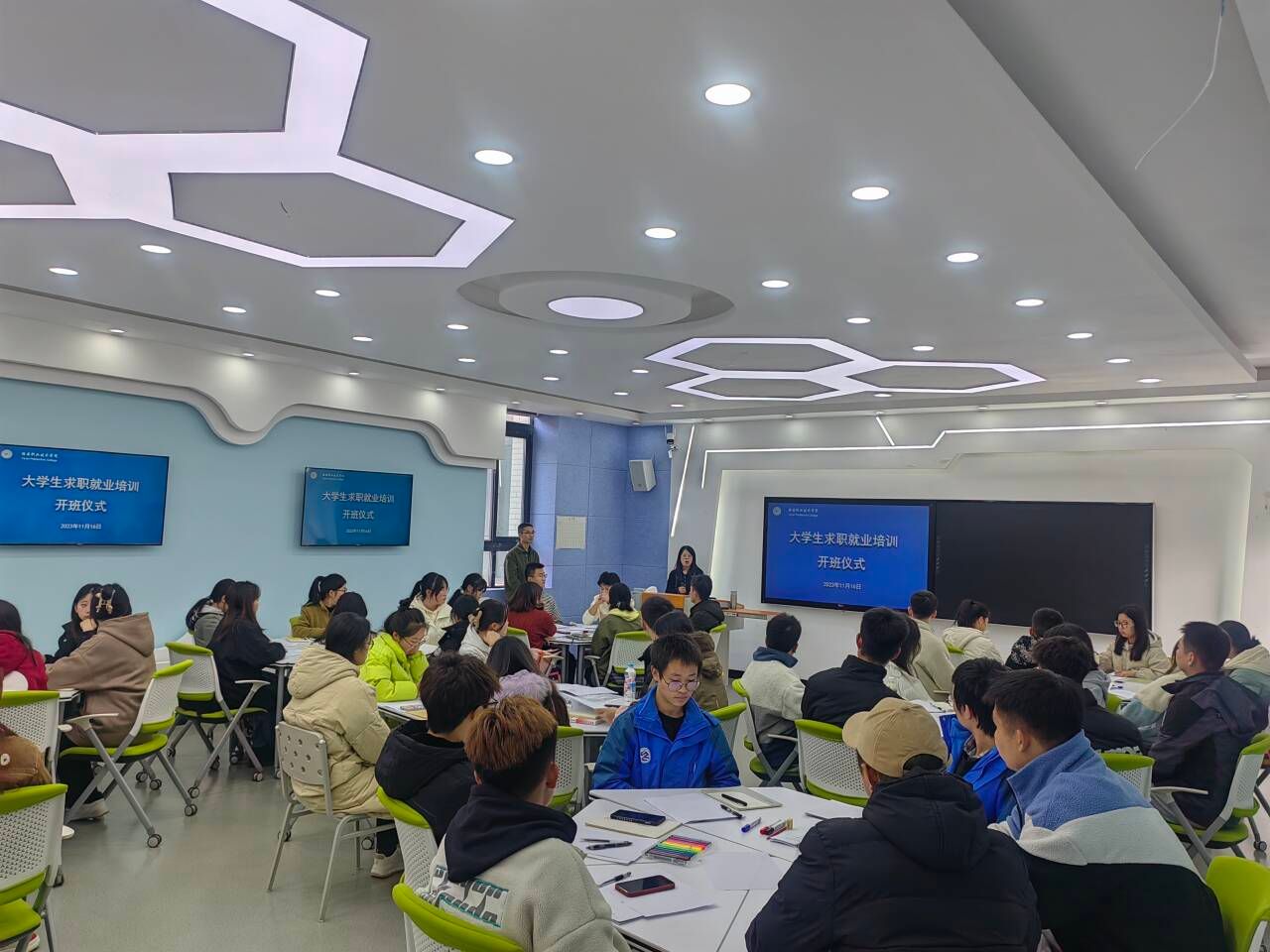 本次培训开设两个班,共计100名学员,线下集中培训60学时,学生无需承担任何费用。培训内容包括大学生就业形势与政策、安全教育、大学生就业准备、大学生就业心理分析、大学生就业途径与求职方式、大学生求职技巧与求职礼仪、大学生就业权益与保障七个模块和10个实践任务,旨在帮助大学生提高求职就业能力。