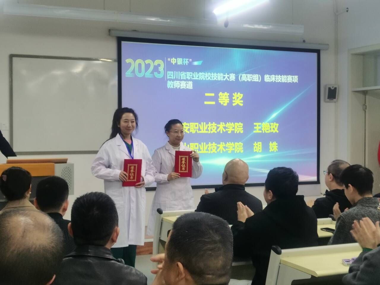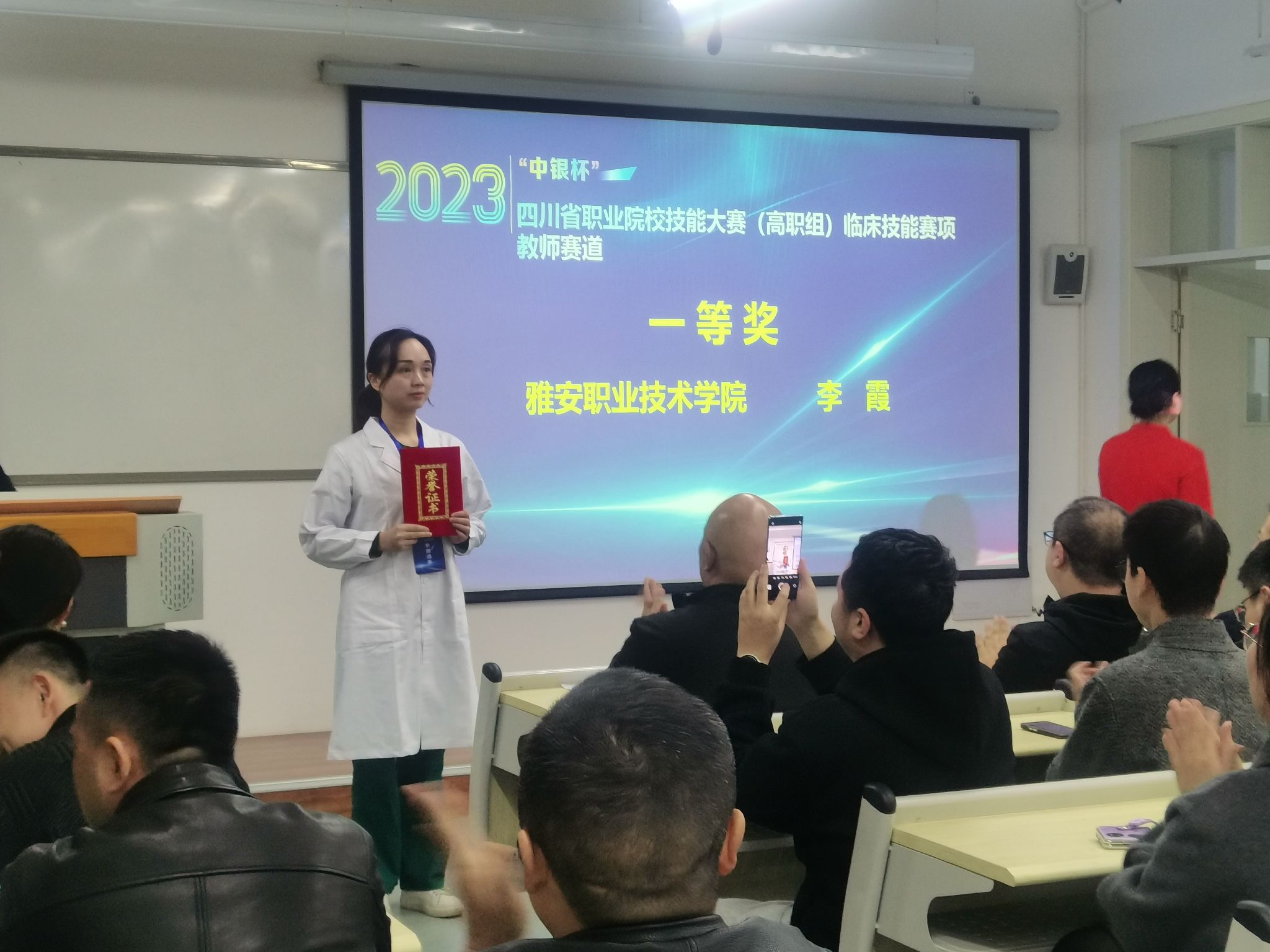 11月24日至25日,由四川省教育厅主办,beat365在线唯一官网承办,雅安市人民医院、天津天堰科技股份有限公司、扬州大海医疗器械有限公司协办的2023“中银杯”四川省职业院校技能大赛(高职组)临床技能赛项比赛在学院顺利举办,来自8所高校的33名选手参加此次大赛。大赛评选出教师赛道组一等奖1个、二等奖2个、三等奖4个,学生赛道组一等奖2个、二等奖4个、三等奖6个。其中,学院邓廖慧、沙小芳获得学生赛道一等奖,王科蕴获得学生赛道二等奖;李霞获得教师赛道一等奖、王艳玫获得教师赛道二等奖。