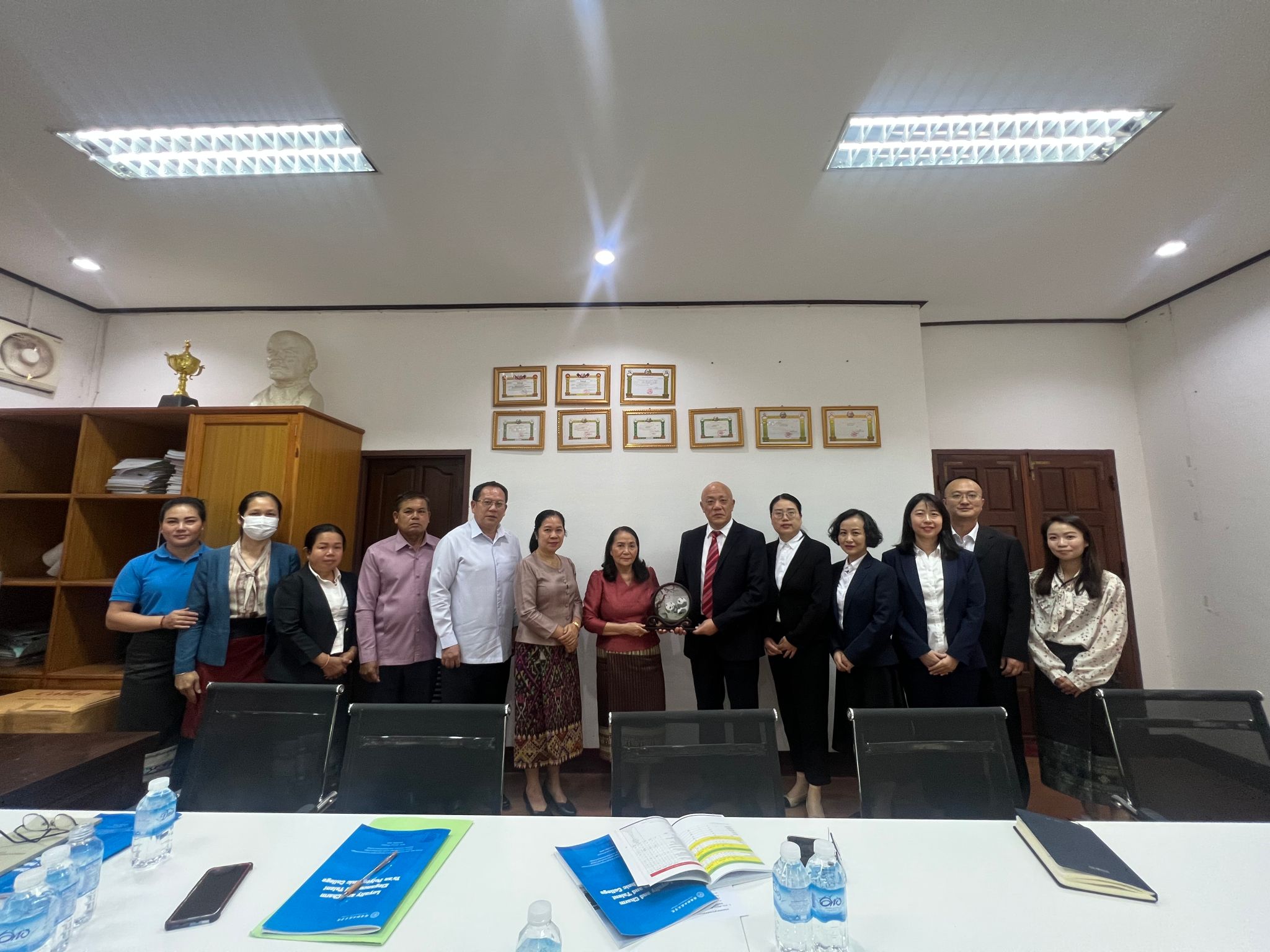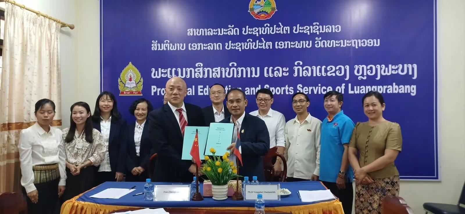 随后,学院与琅勃拉邦省教育与体育厅签订了建立合作关系的备忘录,在留学生的人才培养、学术科研、师资交流、职业教育研究和“中文+职业技能”培训上开启交流与合作,并参访琅勃拉邦职业技术学院。