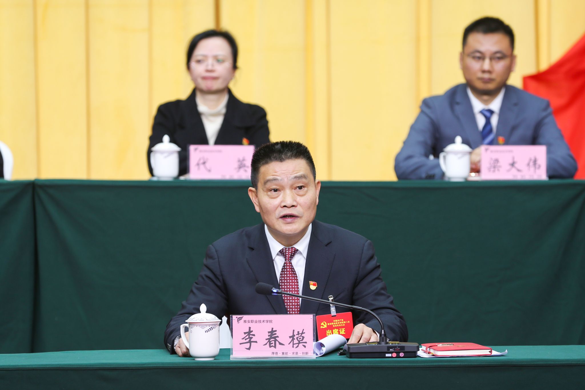 大会号召,全校各级党组织、全体共产党员和广大师生员工要在新一届党委的领导下,更加紧密团结在以习近平同志为核心的党中央周围,高举中国特色社会主义伟大旗帜,坚持以习近平新时代中国特色社会主义思想为指导,在省委教育工委和雅安市委的坚强领导下,扎根雅州沃土,坚持和发扬雅职精神,踔厉奋发、乘势而上,加快建设特色鲜明高水平高职院校,为全面建设社会主义现代化国家贡献雅职力量。