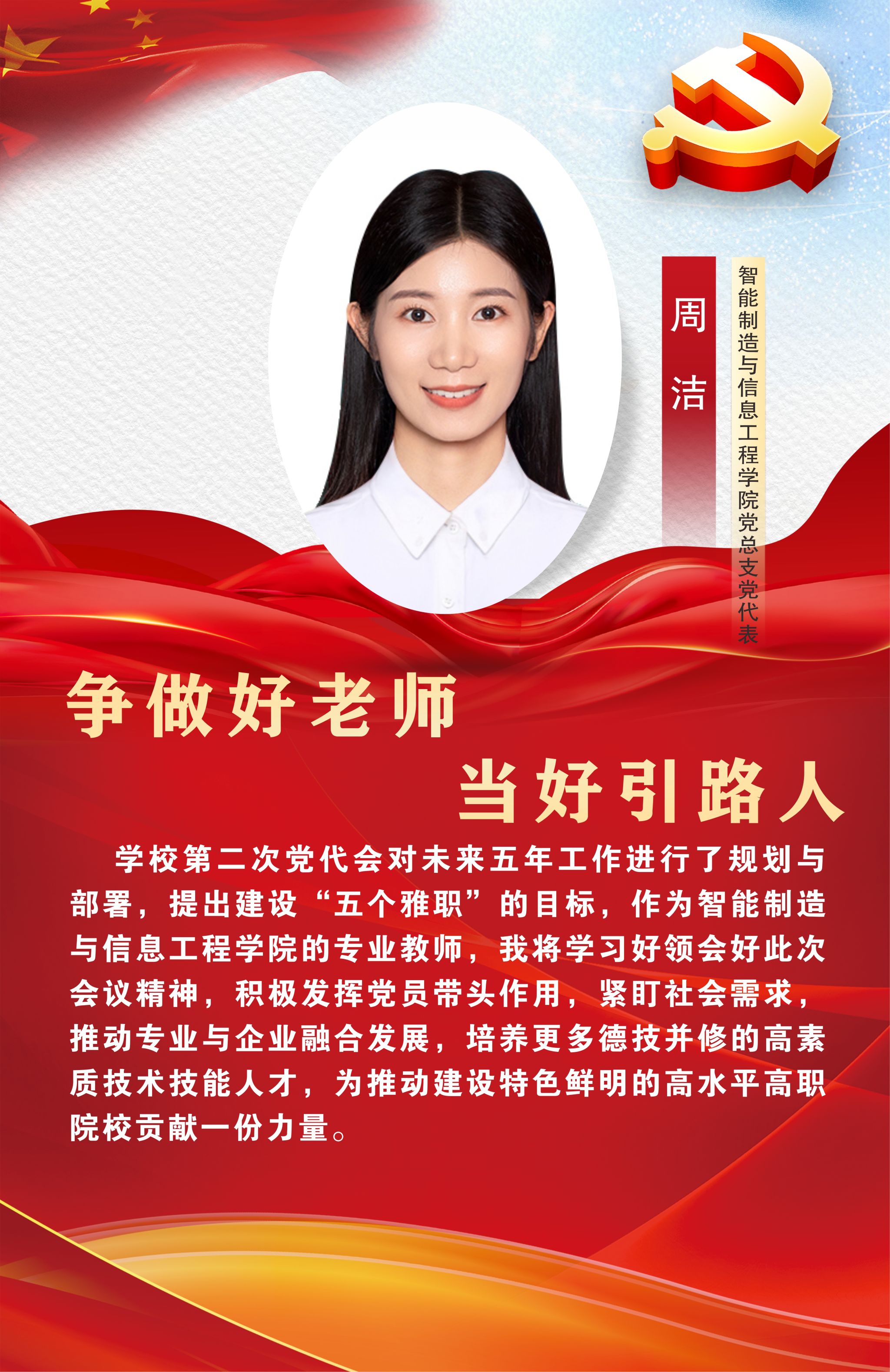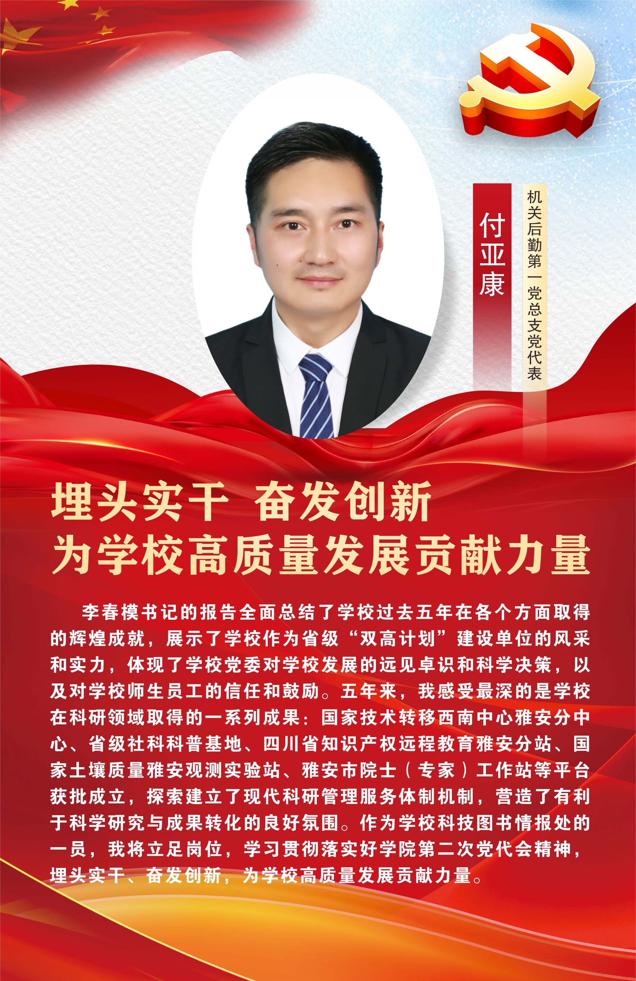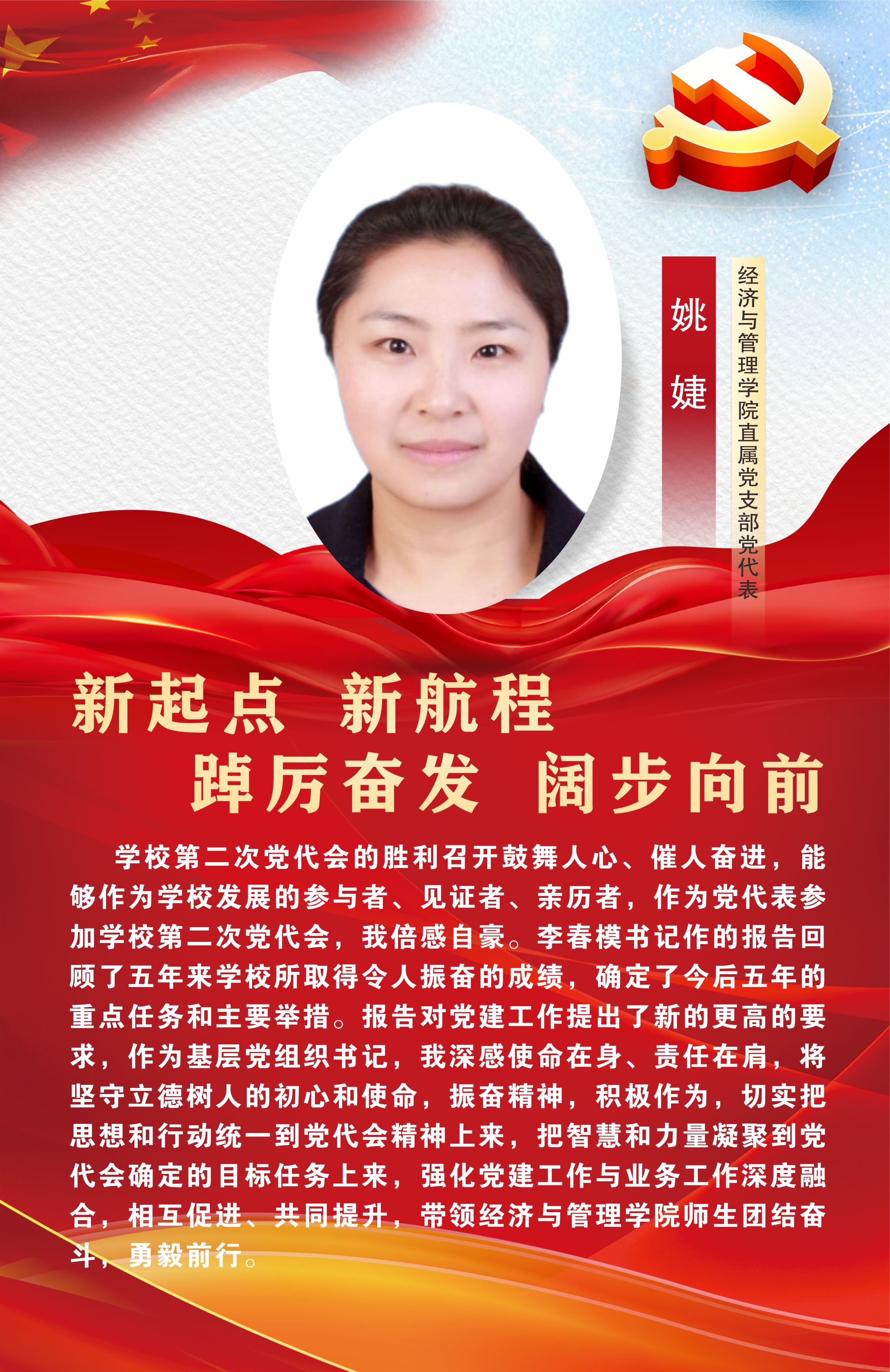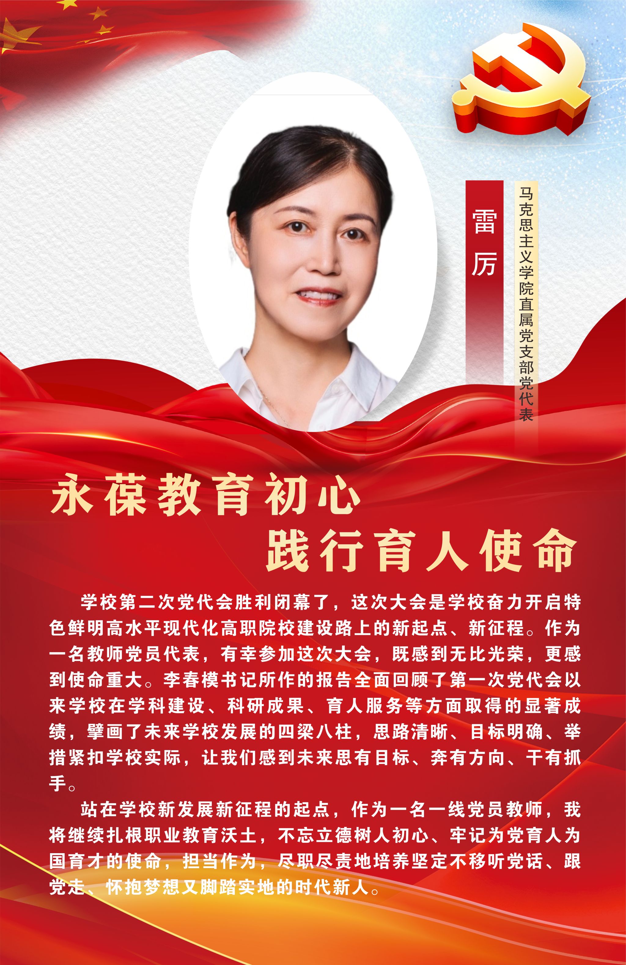 12月29日,中国共产党beat365在线唯一官网第二次党员代表大会在经开区校区聚雅厅胜利闭幕。此次大会对学校未来发展建设有着谋篇布局、举旗定向的关键作用,是全校师生政治生活中的一件大事。让我们高举中国特色社会主义伟大旗帜,以习近平新时代中国特色社会主义思想为指导,坚持立德树人根本任务,坚守为党育人、为国育才初心使命,始终心怀“国之大者”“省之大计”“市之大事”,坚定信心,同心同德,以时不我待只争朝夕的精神状态,踔厉奋发、乘势而上,为建设特色鲜明高水平高职院校而团结奋斗,在以中国式现代化引领职业教育高质量发展的征程中贡献雅职力量。