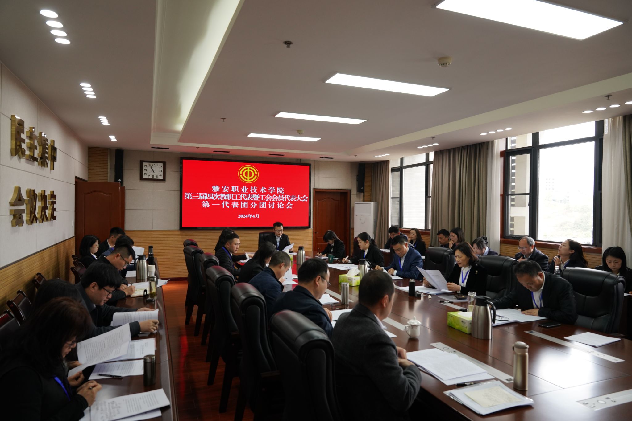 四个代表团还书面审议了学校财务工作报告、工会经费审查报告、教代会提案审查报告、为民办实事具体事项,并提出了富有建设性的意见和建议。