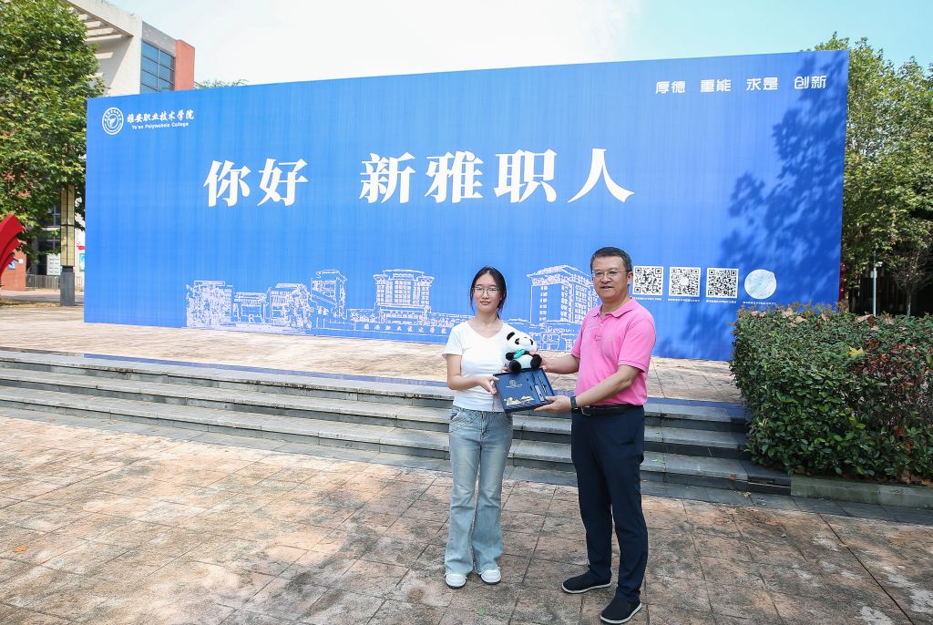 大学的意义不止在于学生专业的培养,更在于其人文关怀。在得知报到当天有多位同学过生日的信息后,学校悄悄准备了“惊喜”。当带着雅职特色的生日礼物,由李书记和黄校长送到新生手中时,温暖在这一刻传递。