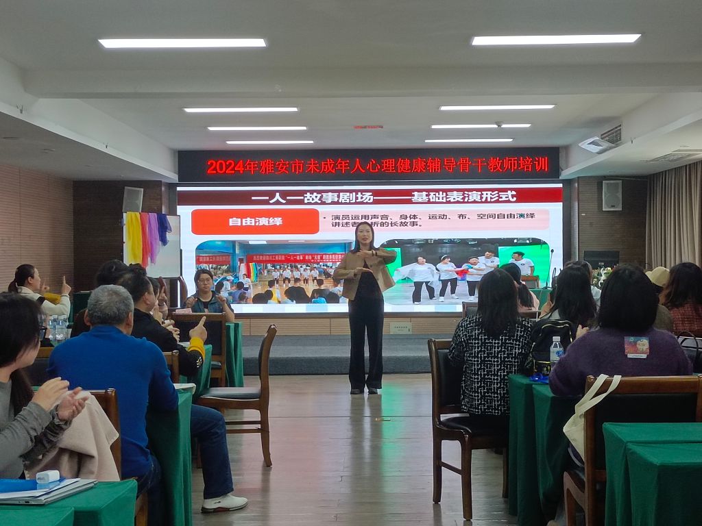 为贯彻落实《四川省全面加强和改进新时代学生心理健康工作实施方案》精神,推进心理骨干教师队伍建设,营造良好心理健康教育氛围,促进我市未成年人心理健康教育工作向纵深发展,10月29日至30日,2024年雅安市未成年人心理健康辅导骨干教师培训在学校学府花园酒店集雅厅顺利举办。各县(区)未成年人心理成长指导中心负责同志、各学校未成年人心理健康辅导工作骨干教师以及市教科院教研员共计54人参加培训。