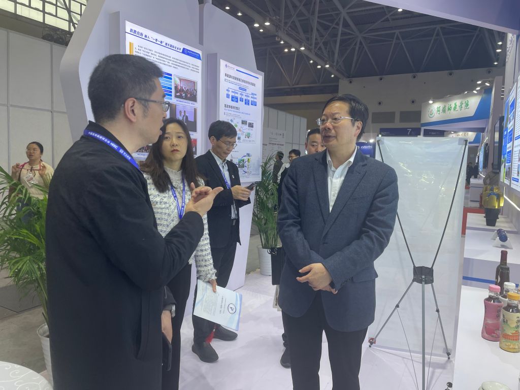 学校展览内容分为学校的总体概况、产教融合体系建设情况、医教协同体系建设情况、职教出海案例等四大部分,以图文并茂的形式展示了学校在对接区域产业需求,深化产教融合,构建“专业集群+产业学院、产业研究院、乡村振兴学院、社区学院”的“一核四驱”专业发展与社会服务体系,支撑和促进专业人才培养,服务区域产业发展等方面的做法和经验,展厅内容丰富,形式新颖,得到了四川省高等教育学会会长、成都信息工程大学党委书记沈火明、四川省高等教育学会秘书长陈传伟等参观领导和嘉宾的一致好评。
