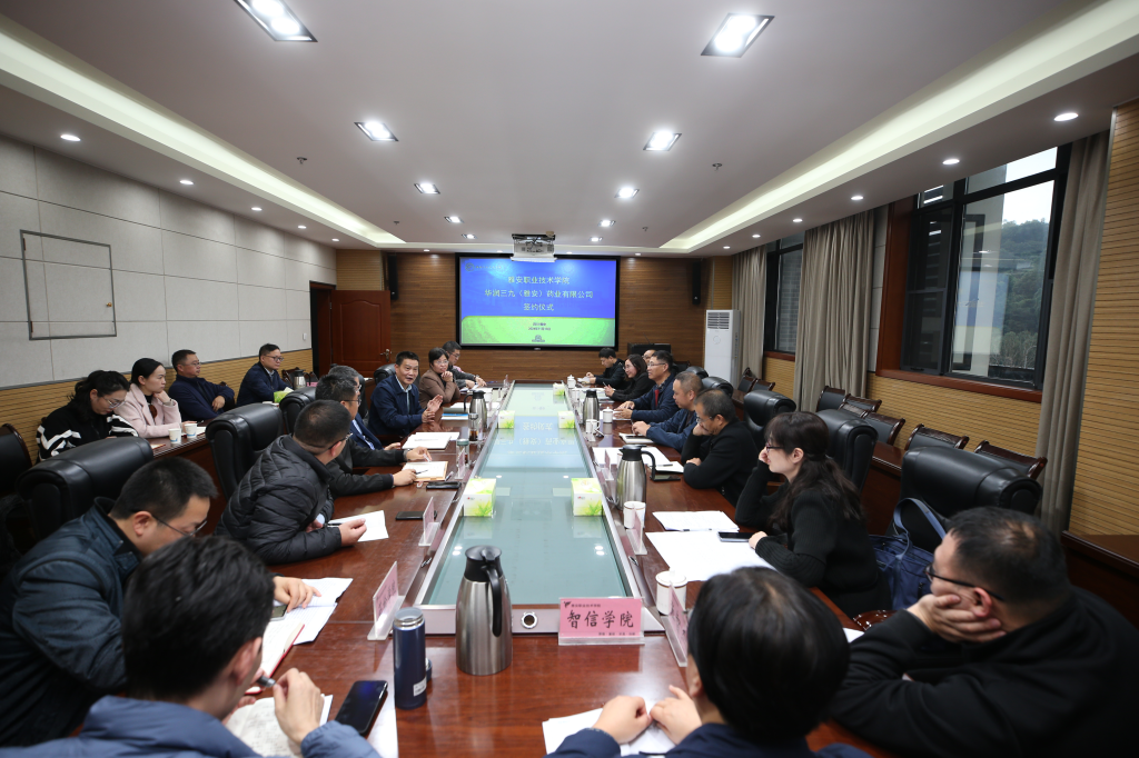 为进一步深化校企合作,推动产教深度融合取得新成效,近日,学校与华润三九(雅安)药业有限公司(以下简称“华润三九”)座谈会暨合作签约仪式在经开区校区综合楼303会议室举行。学校党委书记李春模,副校长彭裕红,党委常委、发展规划处处长梁大伟,华润三九(雅安)总经理朱雅宁,副总经理吴建国、李蓉、彭友海出席。学校党委副书记、校长黄诚主持签约仪式。