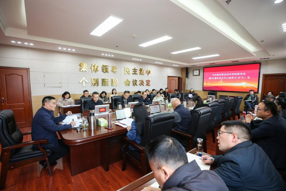 12月5日下午,学校党委在经开校区举行第9次党委中心组学习(扩大)会。党委书记李春模主持会议并讲话,全体在家的理论学习中心组成员、党委委员、中层正职参加学习。