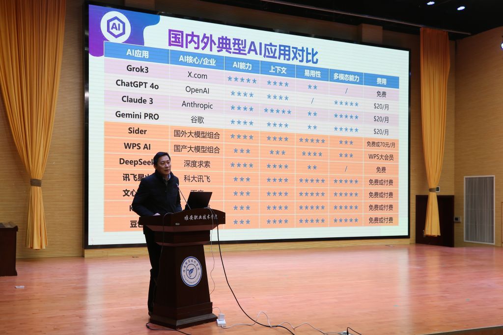 黄诚在讲话中指出:“人工智能是教育的赋能者,而非替代者。教师应积极掌握AI技术,打造兼具温度与个性的精品教育。”他强调,教师应树立“五术育人”理念,应精准把握“道术”,深刻理解育人规律;强化“学术”,突出专业特色;精研“技术”,推动应用创新;提升“艺术”,优化教学水平;坚守“仁术”,不忘教育初心。