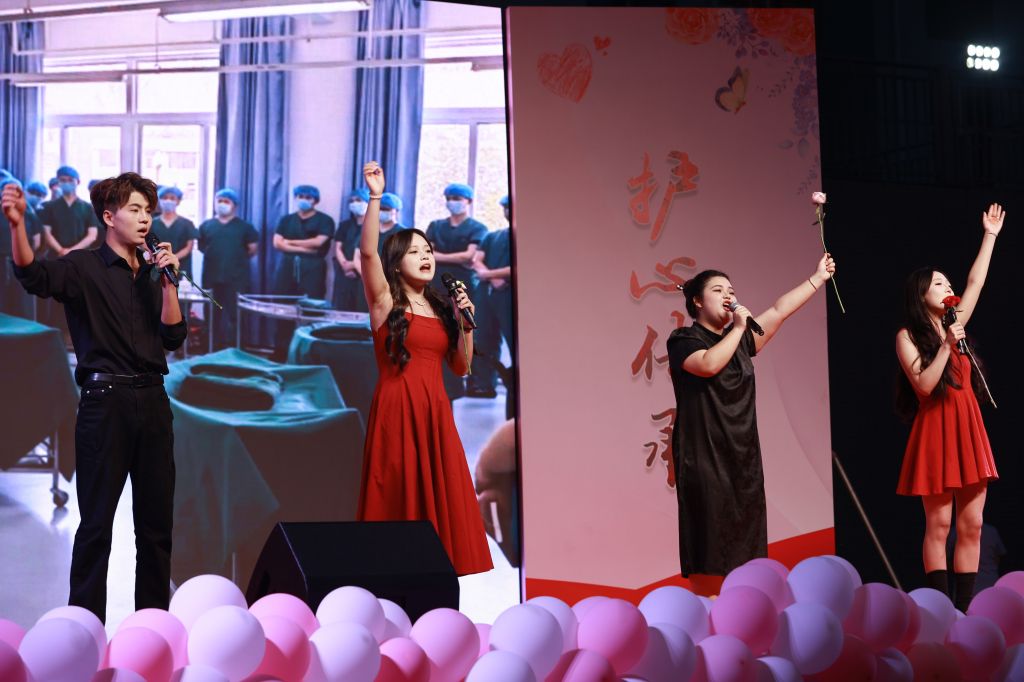 本次晚会以“青衿致远,护心传承”为主题,分为“护梦远航,初心如炬”“护翼筑梦,榜样领航”“护心传承,爱满人间”三个篇章。同学们精心准备了歌曲、舞蹈、情景剧、朗诵等多种表演形式,生动地表达了对青春的赞美、对护理职业的尊崇之情,颂扬了白衣天使肩负的使命与荣耀,现场气氛热烈而感人。