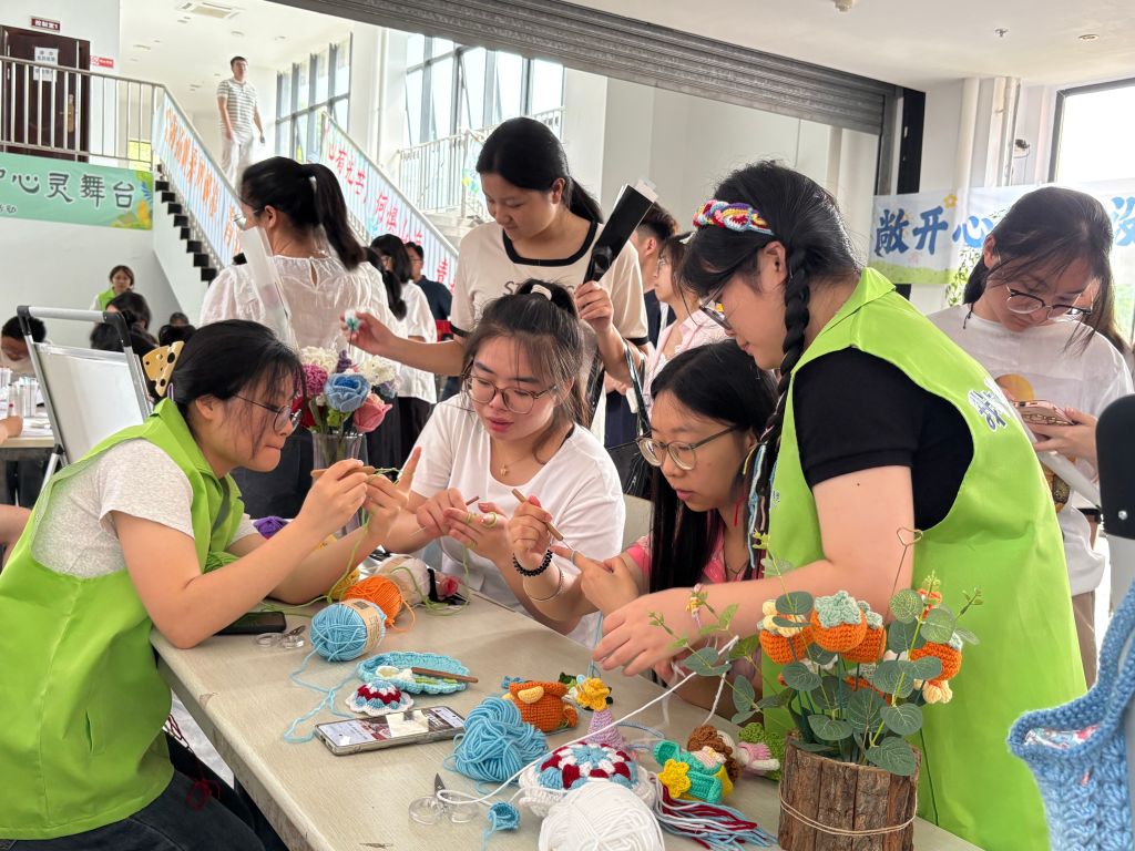 活动中,学校心理健康教育中心、团委以及临床医学院 “遇空间”心理工作站的师生志愿者们精心组织了“心灵解忧・遇见美好” 艺术表达工作坊、“纸短情长,花开暖途”园艺心理疗愈工作坊等一系列活动,并设置了曼陀罗绘画、心愿墙、情绪宣泄区等互动体验区。师生们通过钩织、绘画、赠送鲜花、撰写心愿等多种形式,尽情放松身心,感受心灵的愉悦与美好,沉浸在这场与自我的深情拥抱、与心灵的深度对话之中。