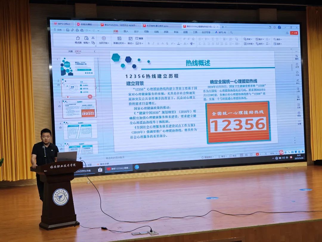 在启动仪式上,陈冬冬发表致辞讲话。赵野逸介绍活动周整体安排及雅安市青少年心理健康服务举措。雅安市第四人民医院医生汪洋专题介绍“雅安市‘12356’心理援助热线”的运行情况与服务内容。国家二级心理咨询师、副教授王丽开展了题为《愈见情绪 遇见美好》的专题讲座。