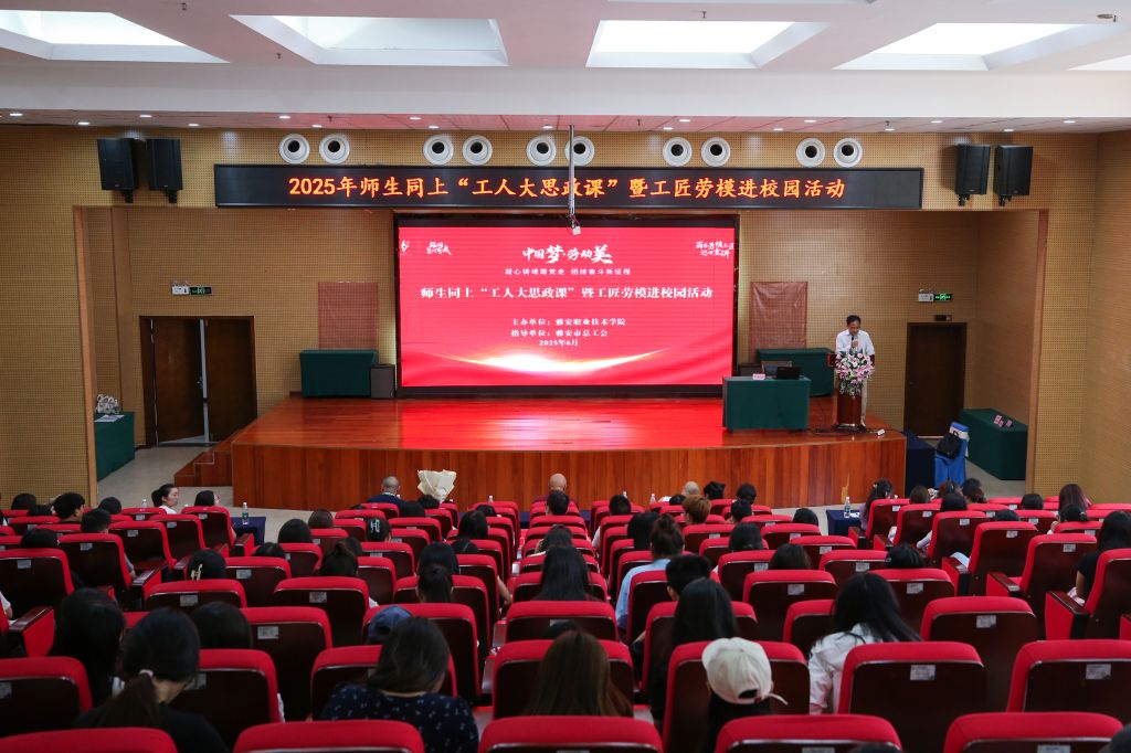 6月10日下午,2025年师生同上“工人大思政课”暨工匠劳模进校园活动在青年路校区博雅厅举行。全国先进工作者熊蕊、全国自强模范张艳、雅安市高级技师邓国胜受邀走进校园,与现场师生分享自己的奋斗故事。学校党委常委、副校长樊正康参加活动并致辞。活动由校工会副主席罗大佺主持。