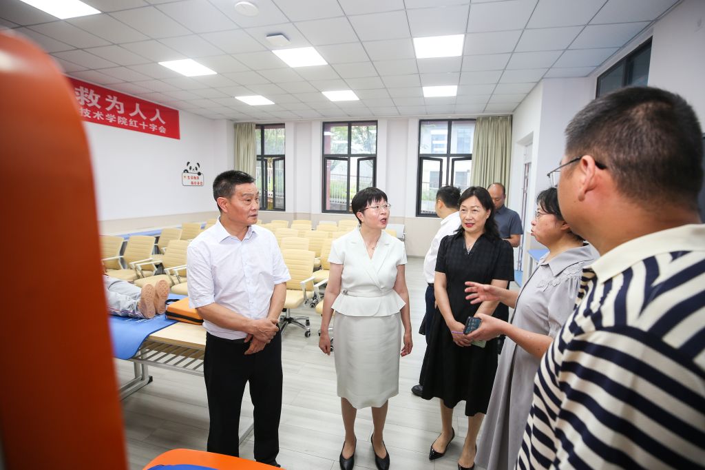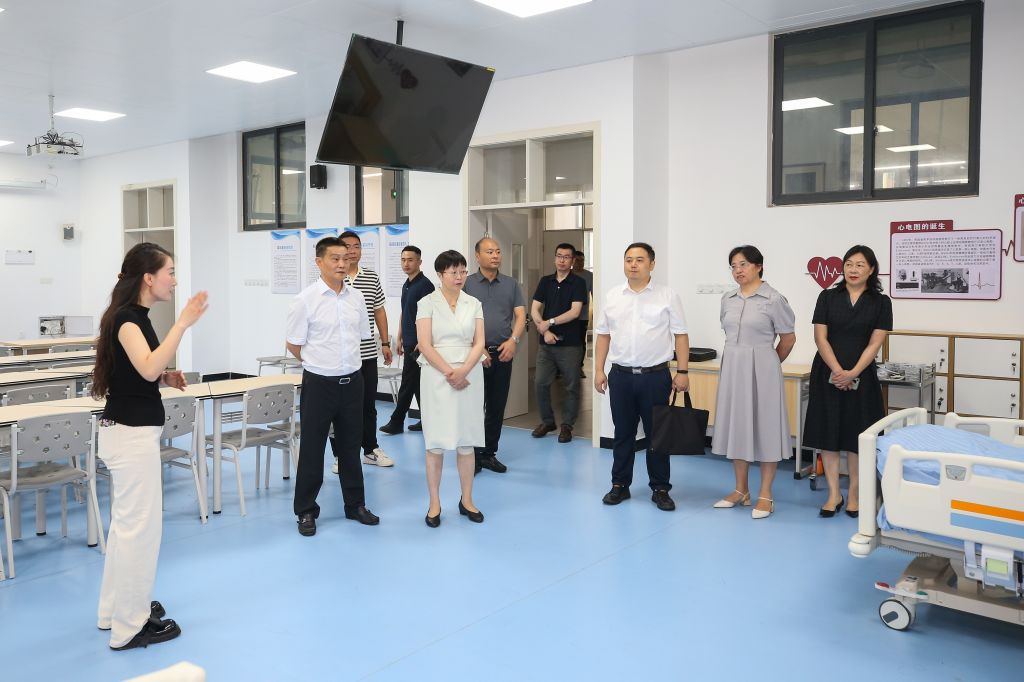 座谈会前,王荣秀一行实地参观了学校校史馆、虚拟仿真实训中心、临床医学实践教学中心、海信医学影像实训基地、食品药品生产性实训基地、工程中心,对学校的实践教学条件和产教融合成果给予了高度评价。