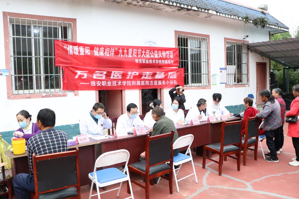 与此同时,学校附属医院13名医护人员组成的医疗队在共和村村活动室外开展了大型医疗义诊活动。