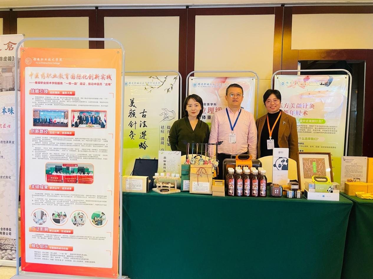 在大会交流环节,beat365代表积极展示办学成果,重点推介了学校独具特色的 “技术服务+职业培训”职业教育出海模式,分享了中医药国际推广与职业技能培训的“雅职经验”。现场,beat365通过校企合作产品、附属医院特色制剂等实物,生动呈现了在中医药临床转化与服务地方健康产业方面的扎实探索,吸引了全国同行的广泛关注。